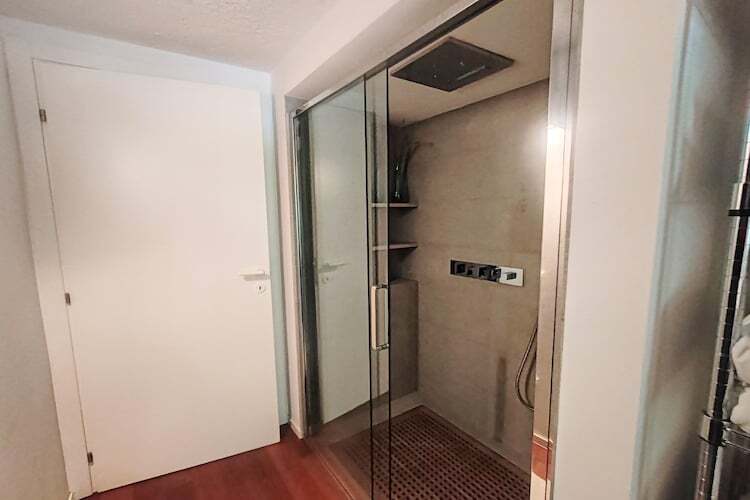 Au niveau inférieur, se trouvent une chambre à deux lits, une chambre double avec un espace fitness intégré, et deux salles de bains, dont une avec baignoire balnéo. Un hammam est également disponible à ce niveau, sur demande et moyennant un supplément, pour une expérience de bien-être encore plus exclusive. La propriété comprend également un grand studio indépendant avec entrée séparée, équipé d'un lit double, d'une cuisine et d'une salle de bains.