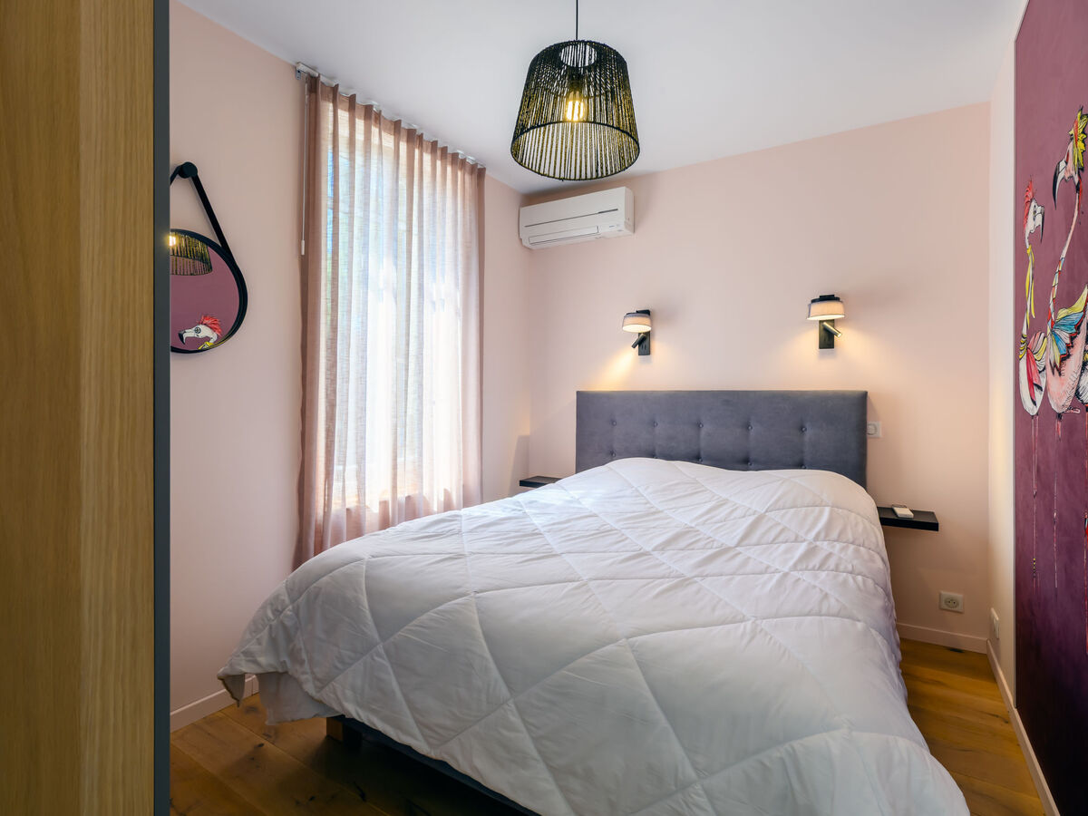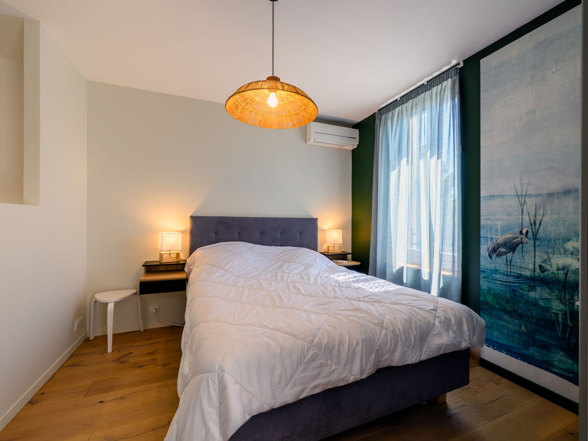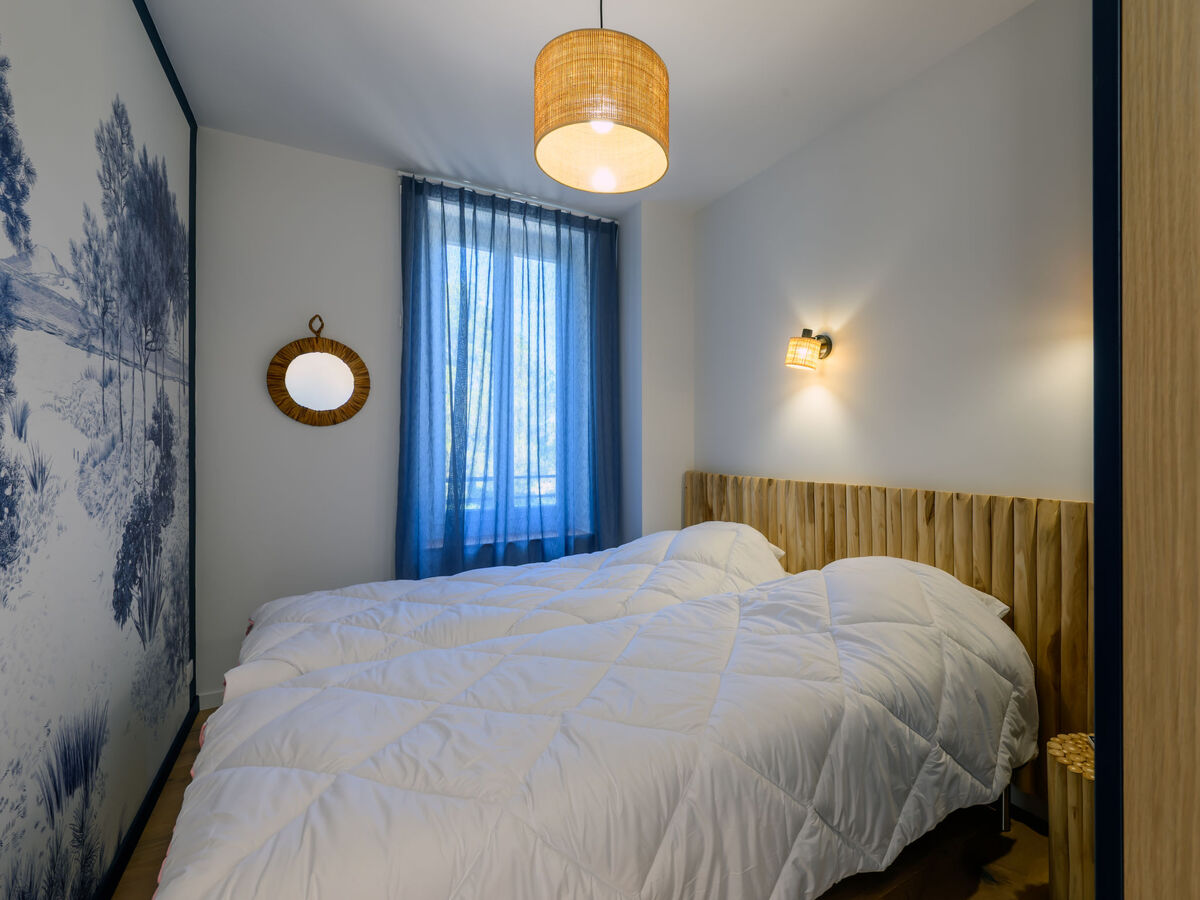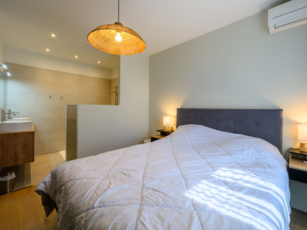 1 chambre avec 1 grand-lit (1 x 160 cm, longueur 200 cm), douche/WC.