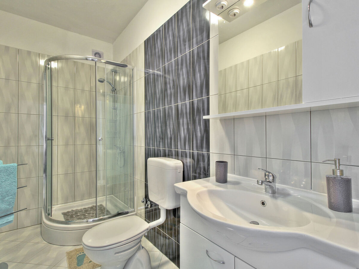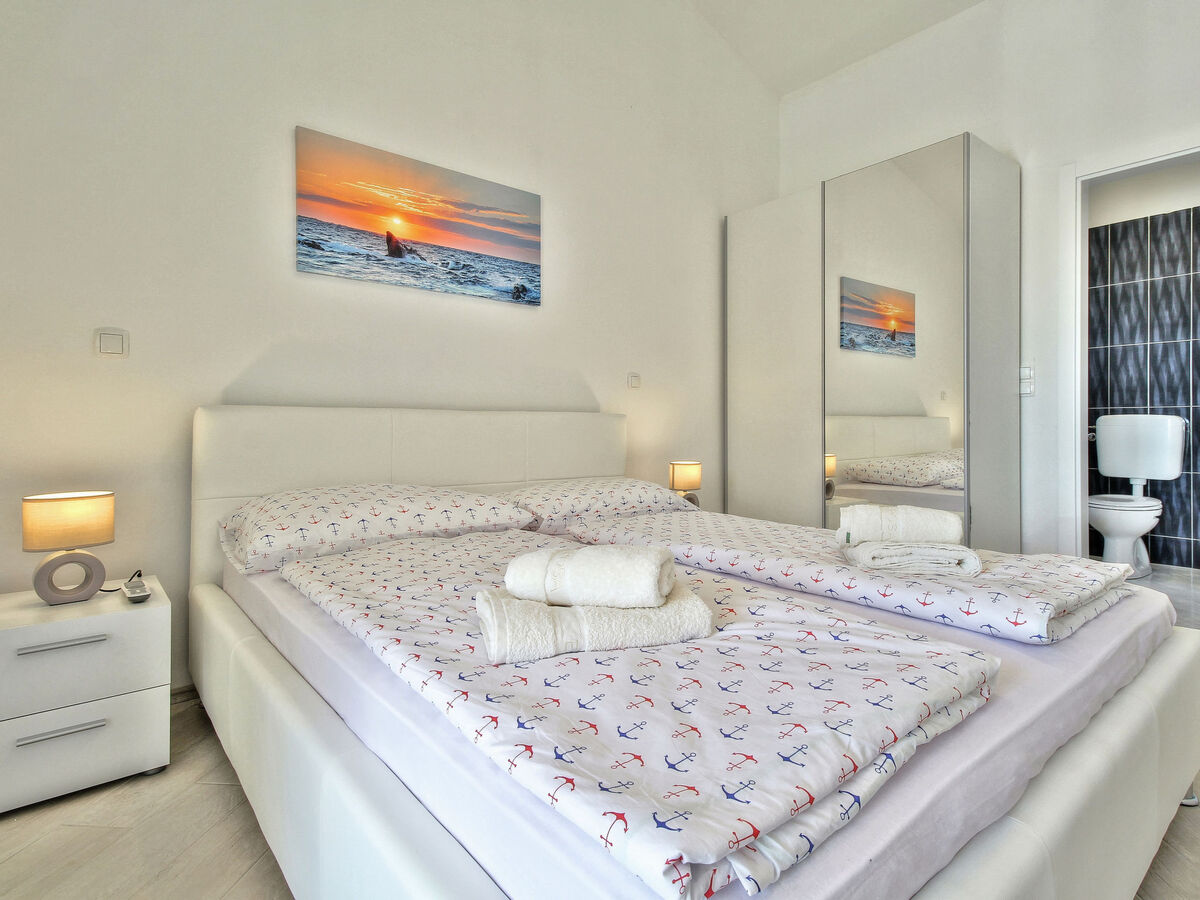 2 chambres, chaque chambre avec: 1 grand-lit (160 cm, longueur 200 cm), douche/WC.