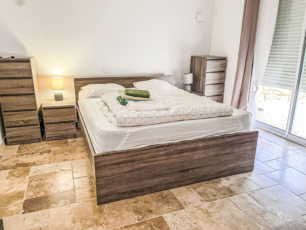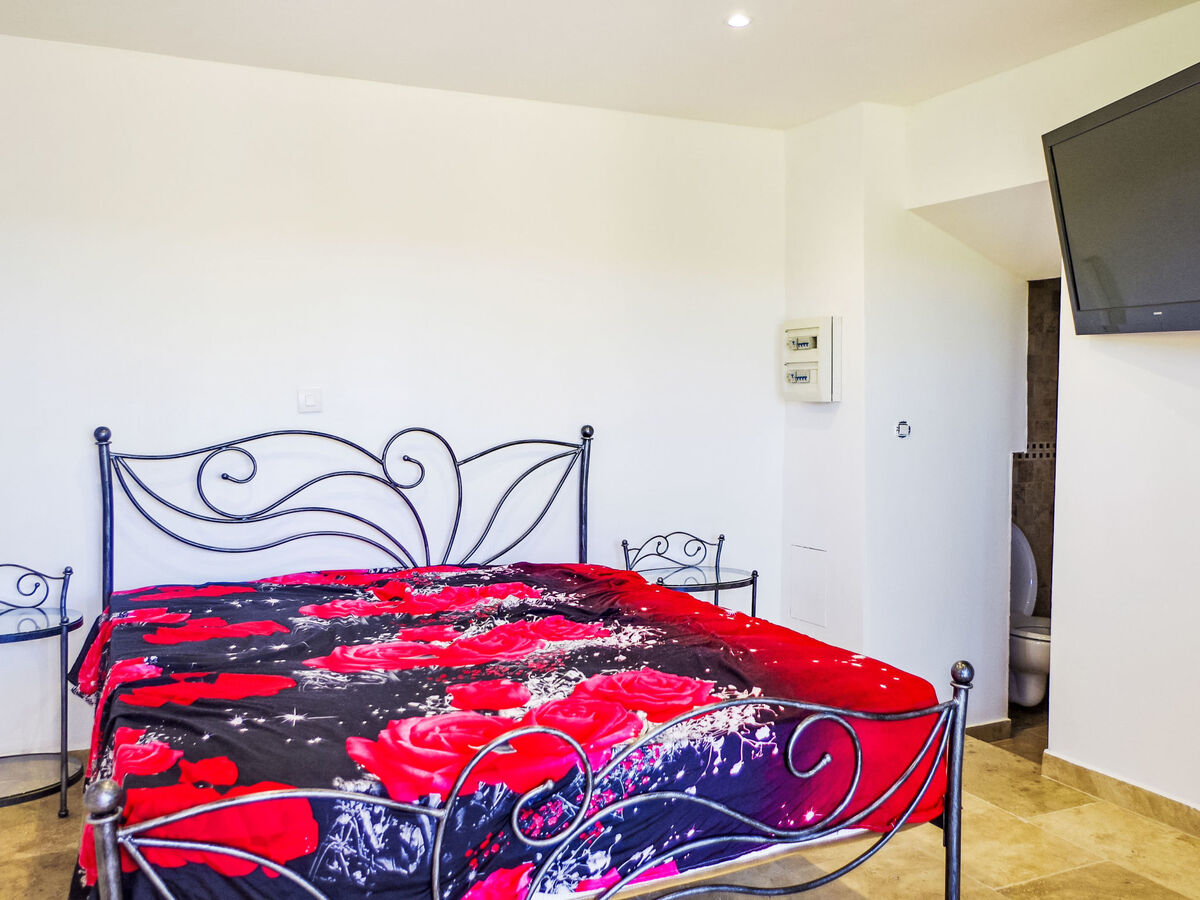 1 chambre avec 1 grand-lit (160 cm, longueur 200 cm), douche/WC et TV (écran plat).