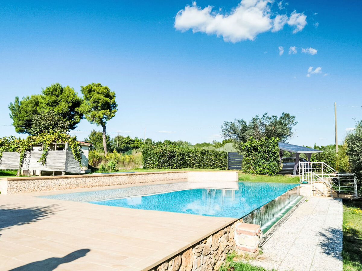 A usage privé: jardin 400 m2 (clôturé) avec pelouse et arbres, piscine (9 x 5 m, profondeur 120 - 140 cm, disponibilité saisonnière: 23.Mai.