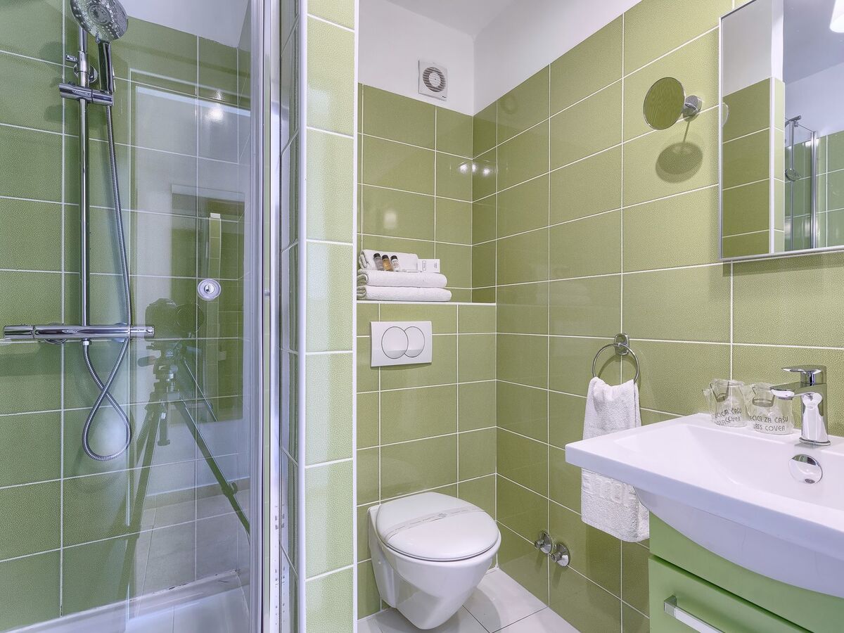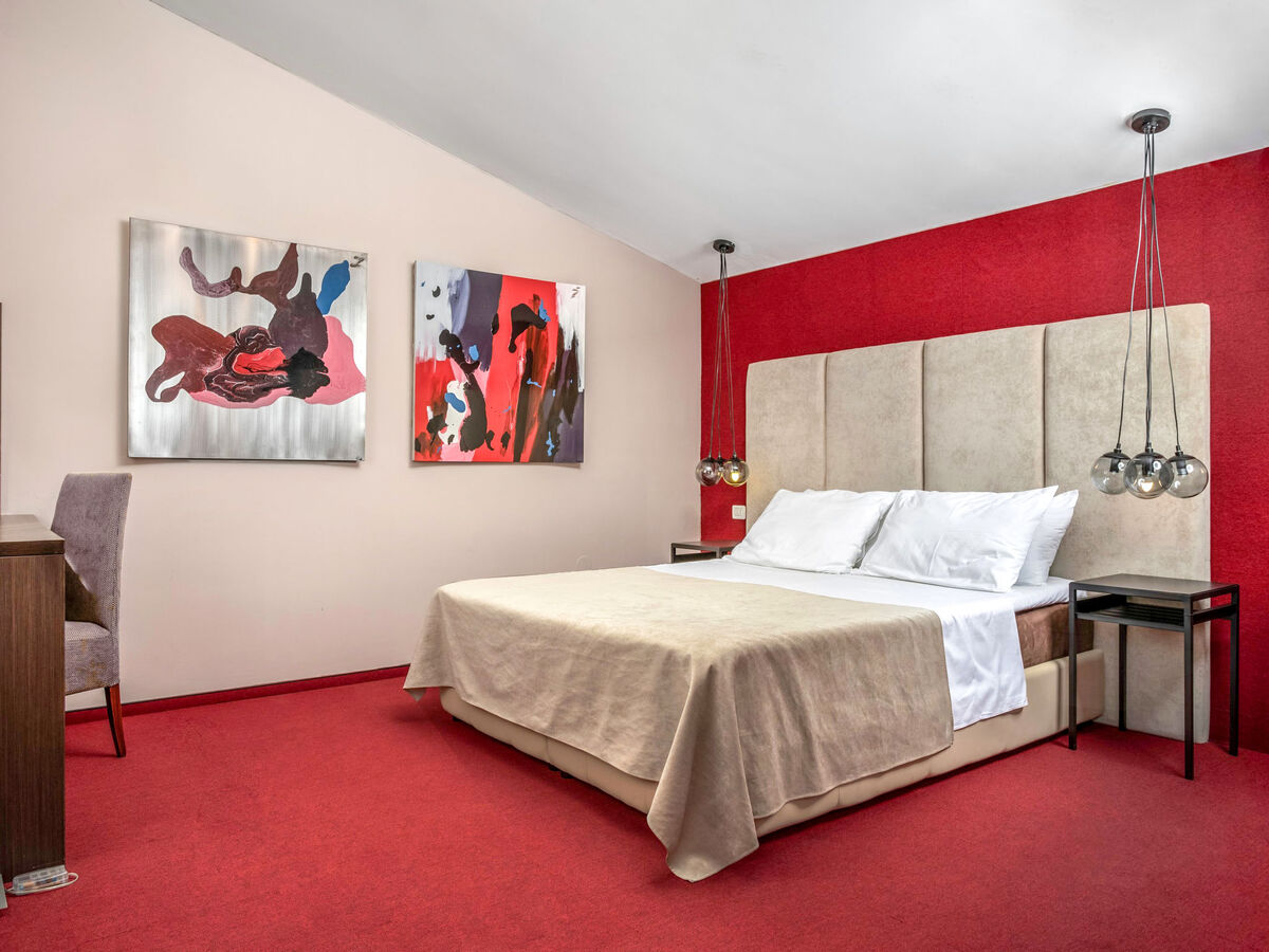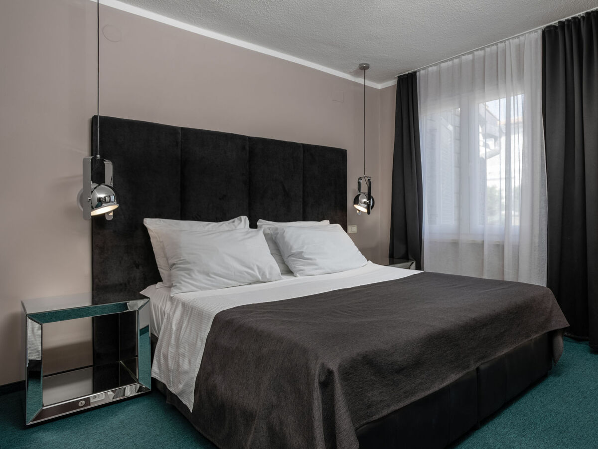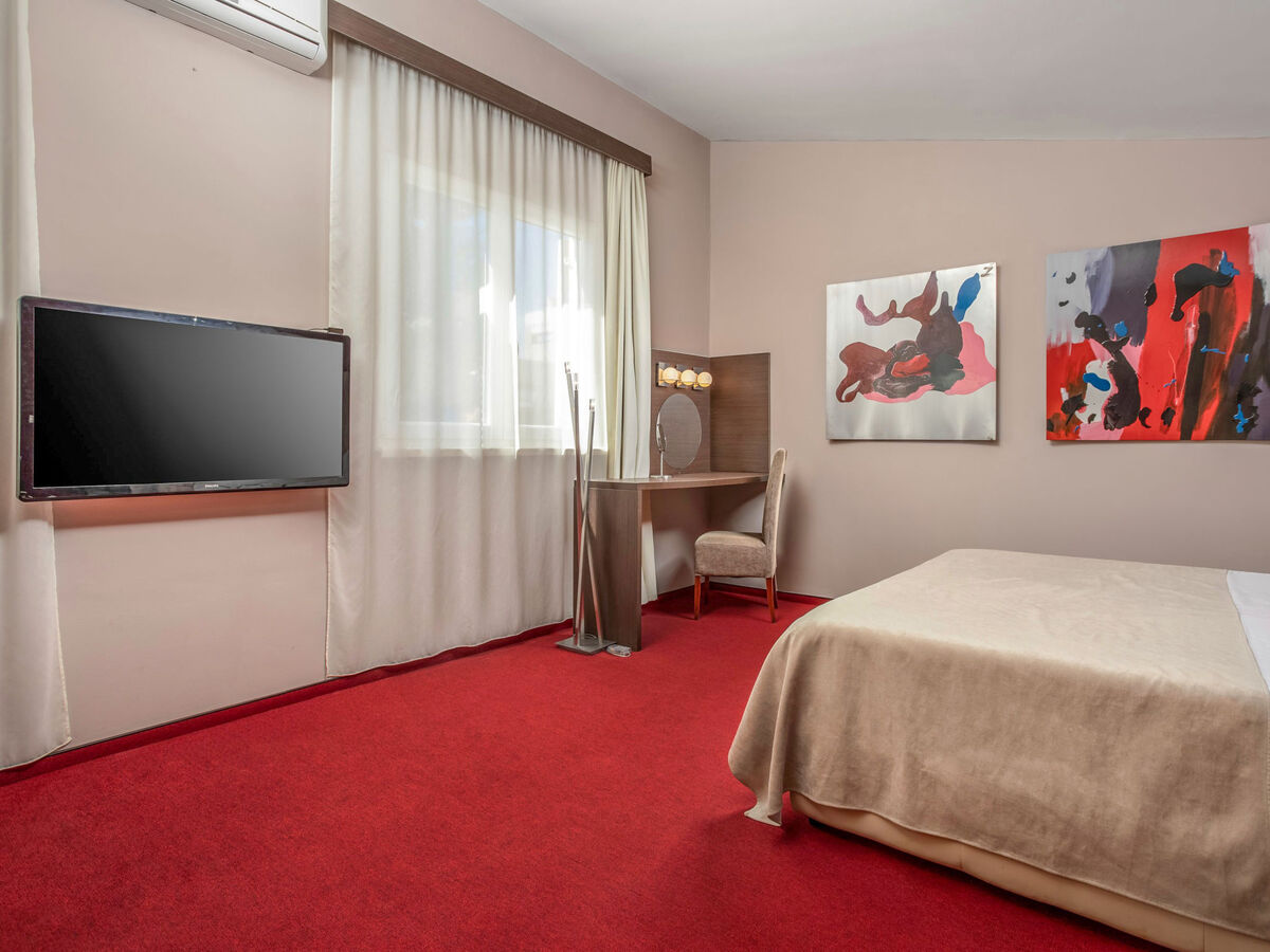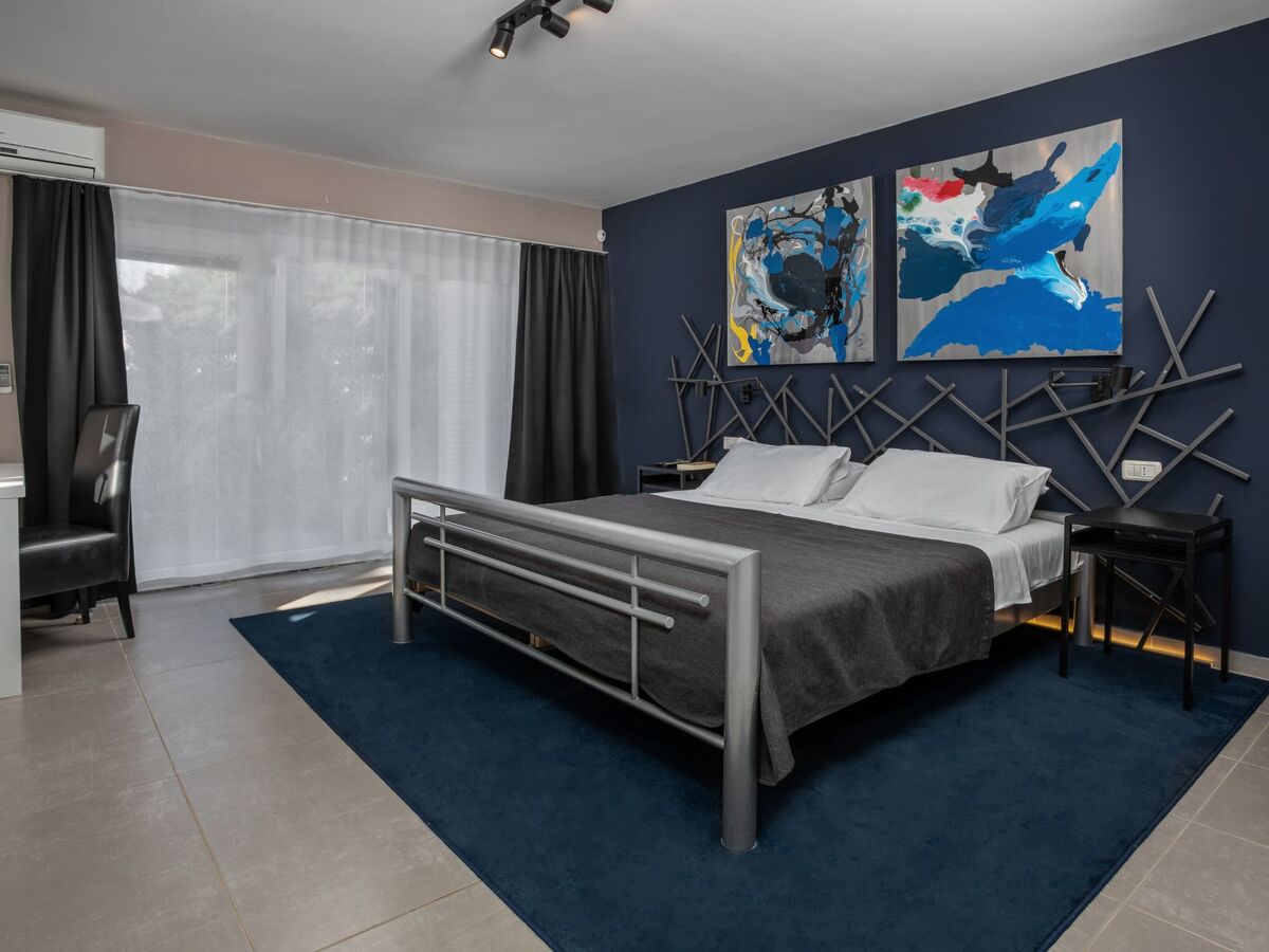 1 chambre 25 m2 avec 1 grand-lit (180 cm, longueur 200 cm), douche/WC, TV (satellite) et air-conditionné.
