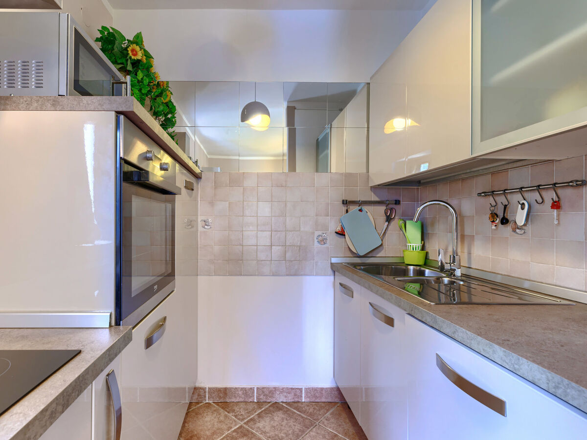 Cuisine ouverte (4 plaques de cuisson, four, lave-vaisselle, micro-ondes, congélateur).