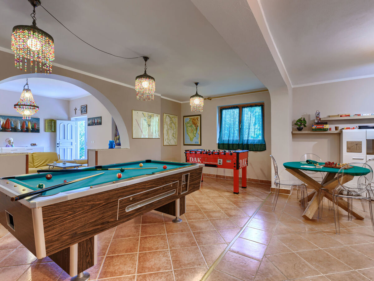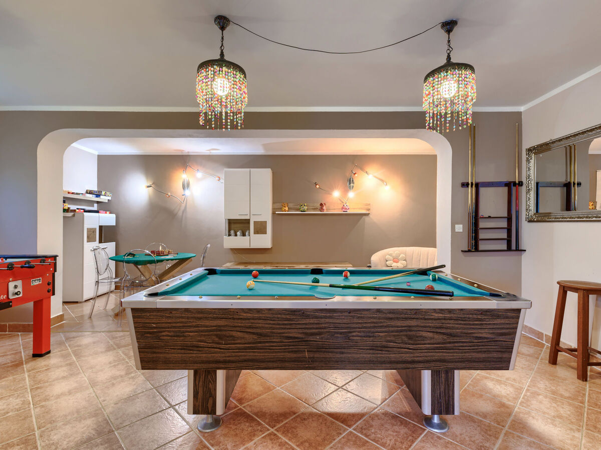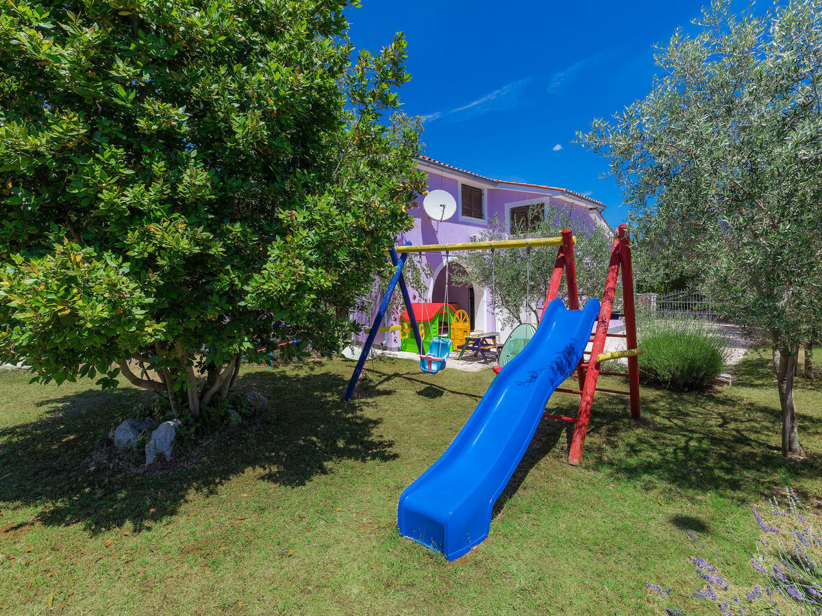 Pool house avec douche et WC, barbecue, espace de jeux pour les enfants (balançoire).