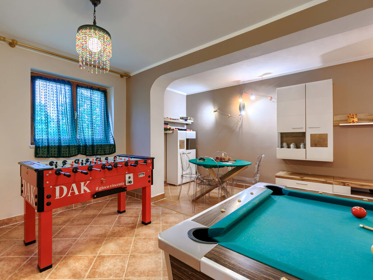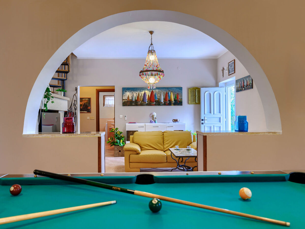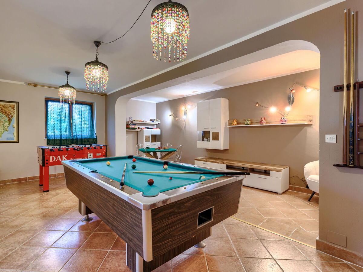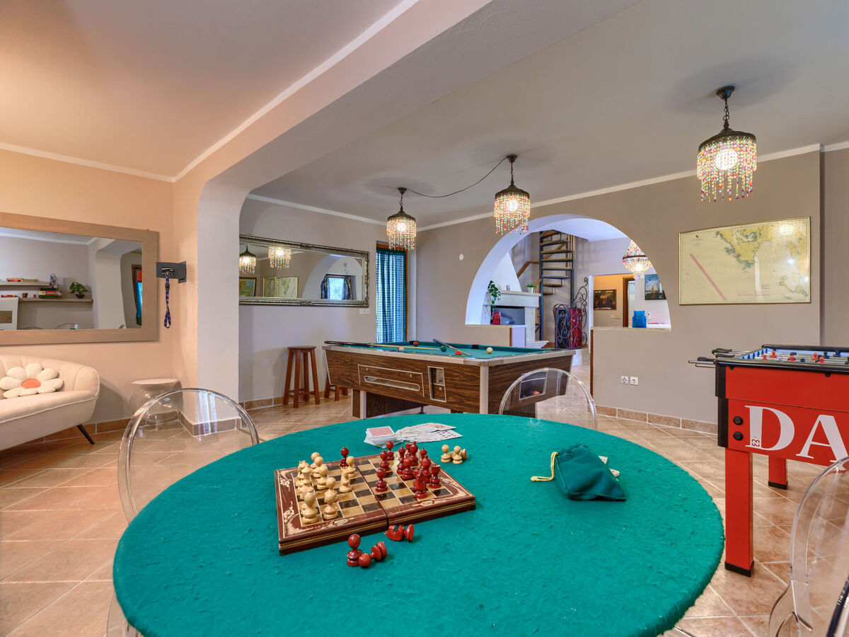 Pool house avec douche et WC, barbecue, espace de jeux pour les enfants (balançoire).
