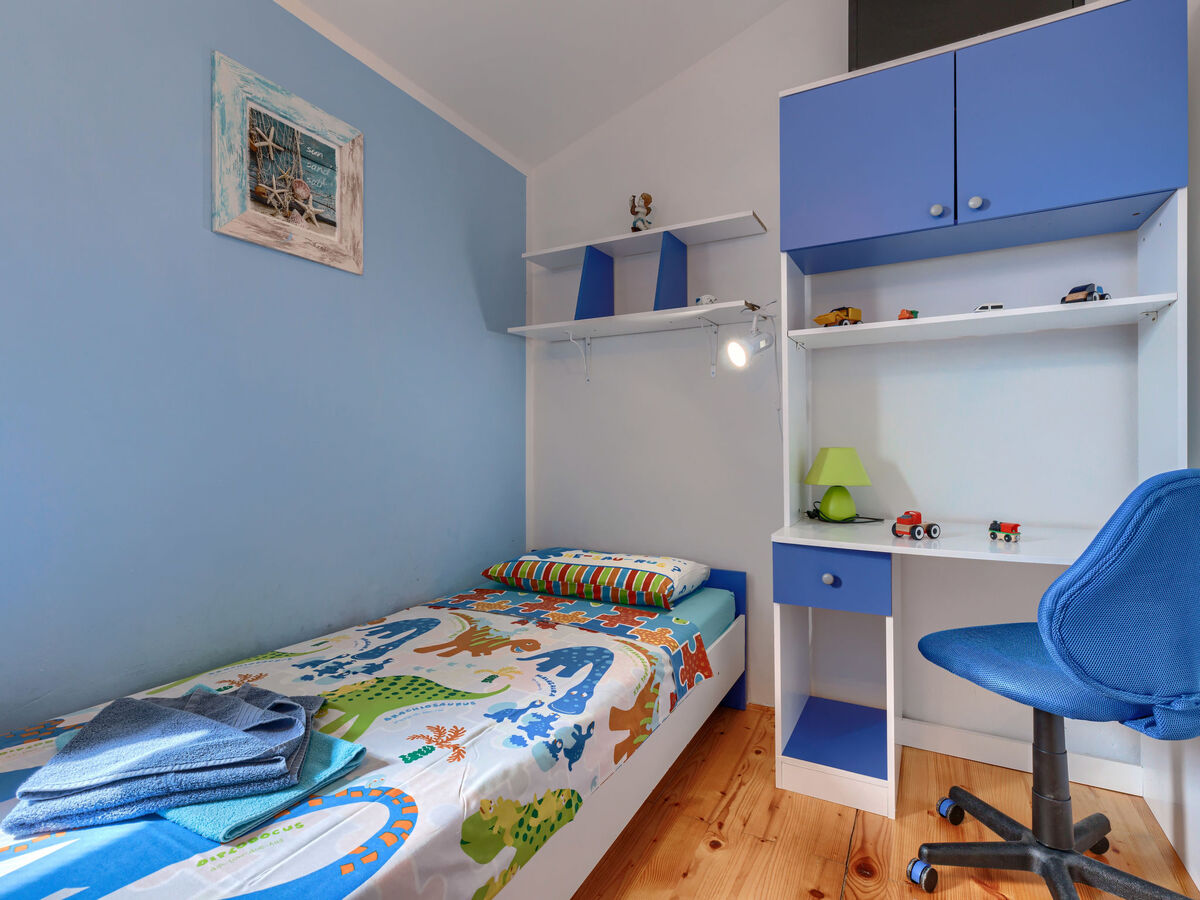 À l'étage supérieur: 1 chambre avec 2 lits (90 cm, longueur 200 cm).