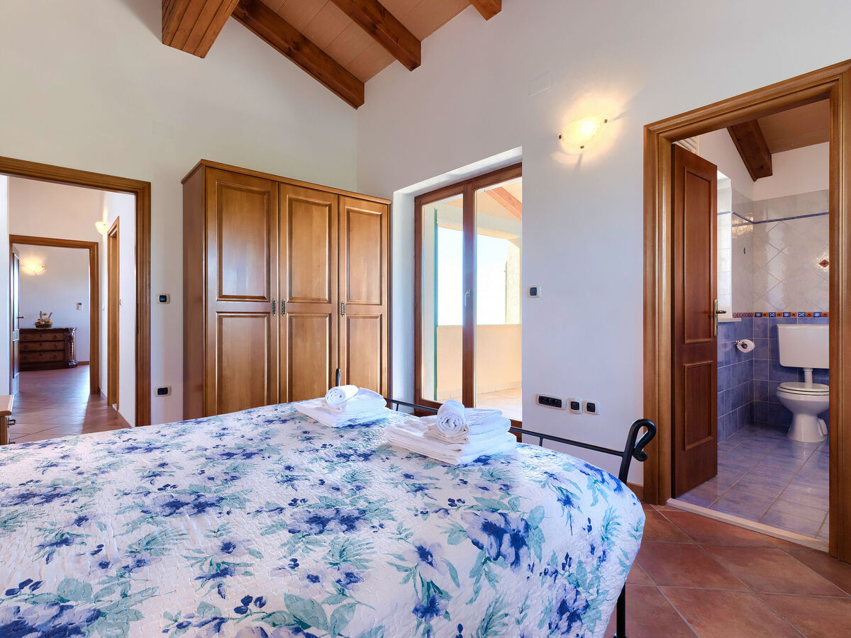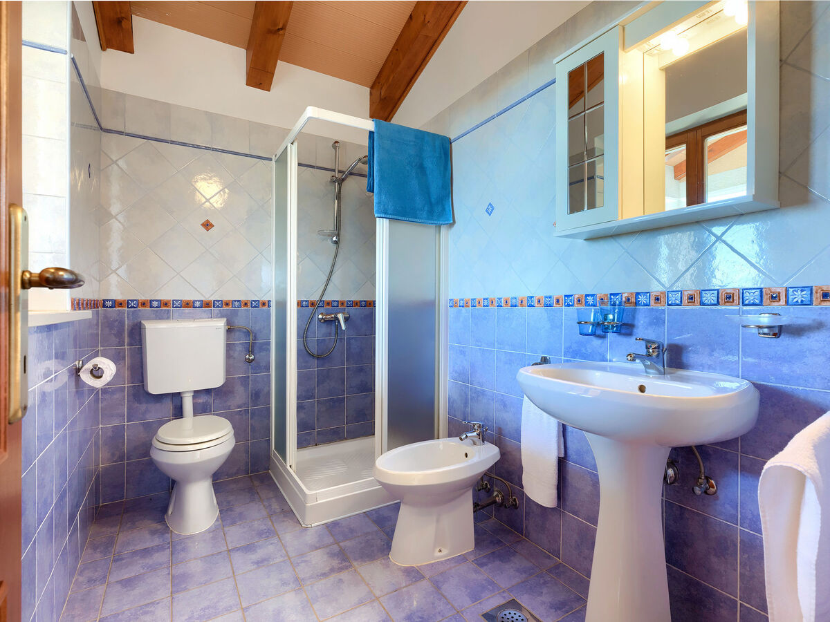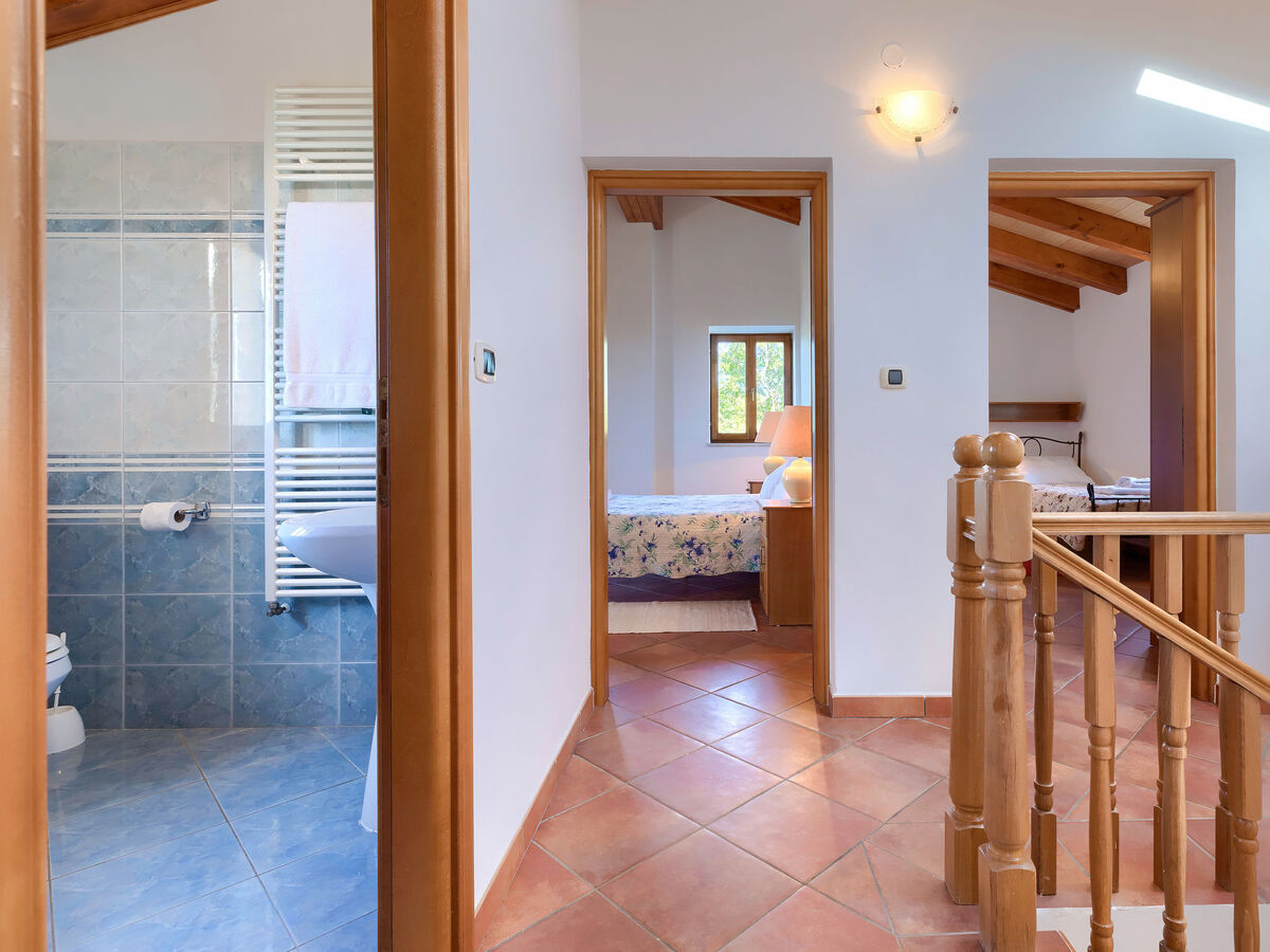 À l'étage supérieur: 2 chambres, chaque chambre avec: 1 grand-lit (160 cm, longueur 190 cm), douche/bidet/WC et air-conditionné.
