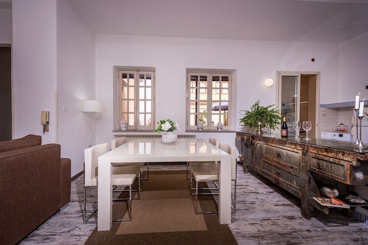 Cette belle maison blanche et bleue, les couleurs typiques de l'architecture méditerranéenne, est située à l'intérieur d'un bâtiment noble qui a une entrée indépendante et se compose d'un grand salon avec un coin conversation, deux chambres, une double et une twin, toutes deux avec salle de bains privative. La cuisine est située dans un grand ouvert avec un coin repas et un coin conversation. La cheminée