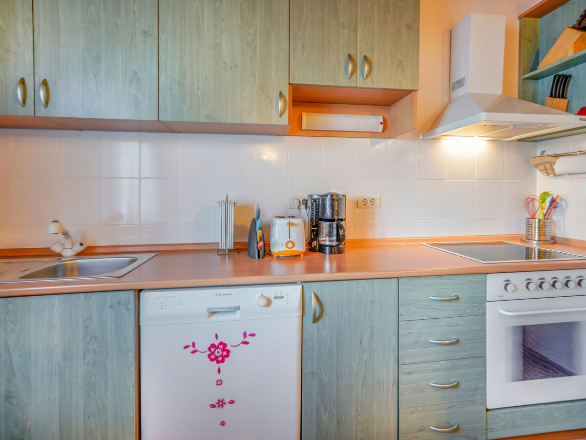 Cuisine ouverte (four, lave-vaisselle, 4 plaques vitrocéramiques, cafetière électrique).