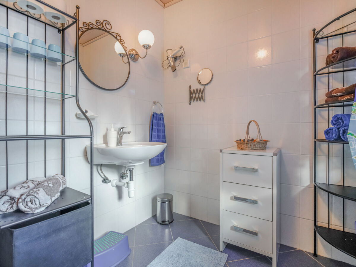 À l'étage supérieur: 1 chambre avec 1 grand-lit (160 cm, longueur 200 cm).
