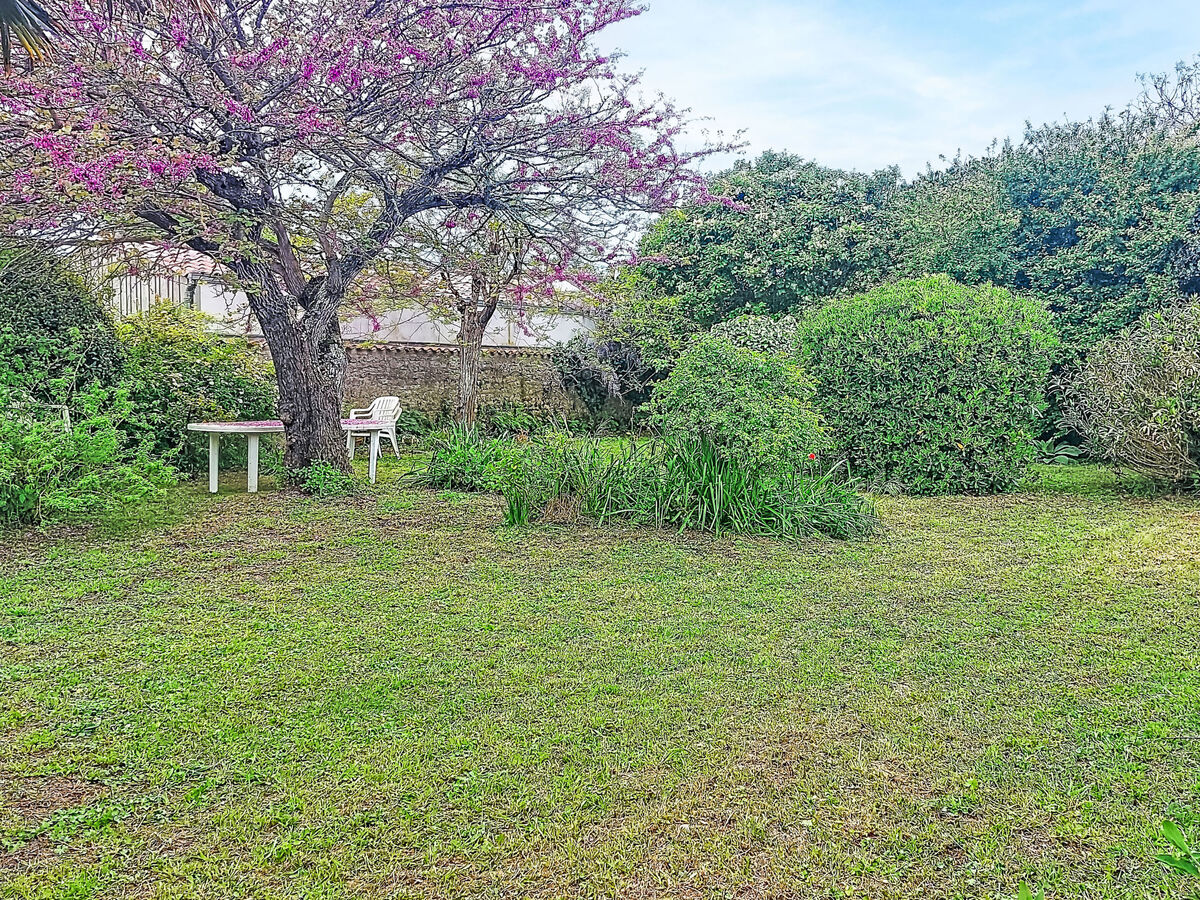 A usage privé: grand jardin entretenu 800 m2 (clôturé) avec pelouse et plantes, parking public possible dans la rue.