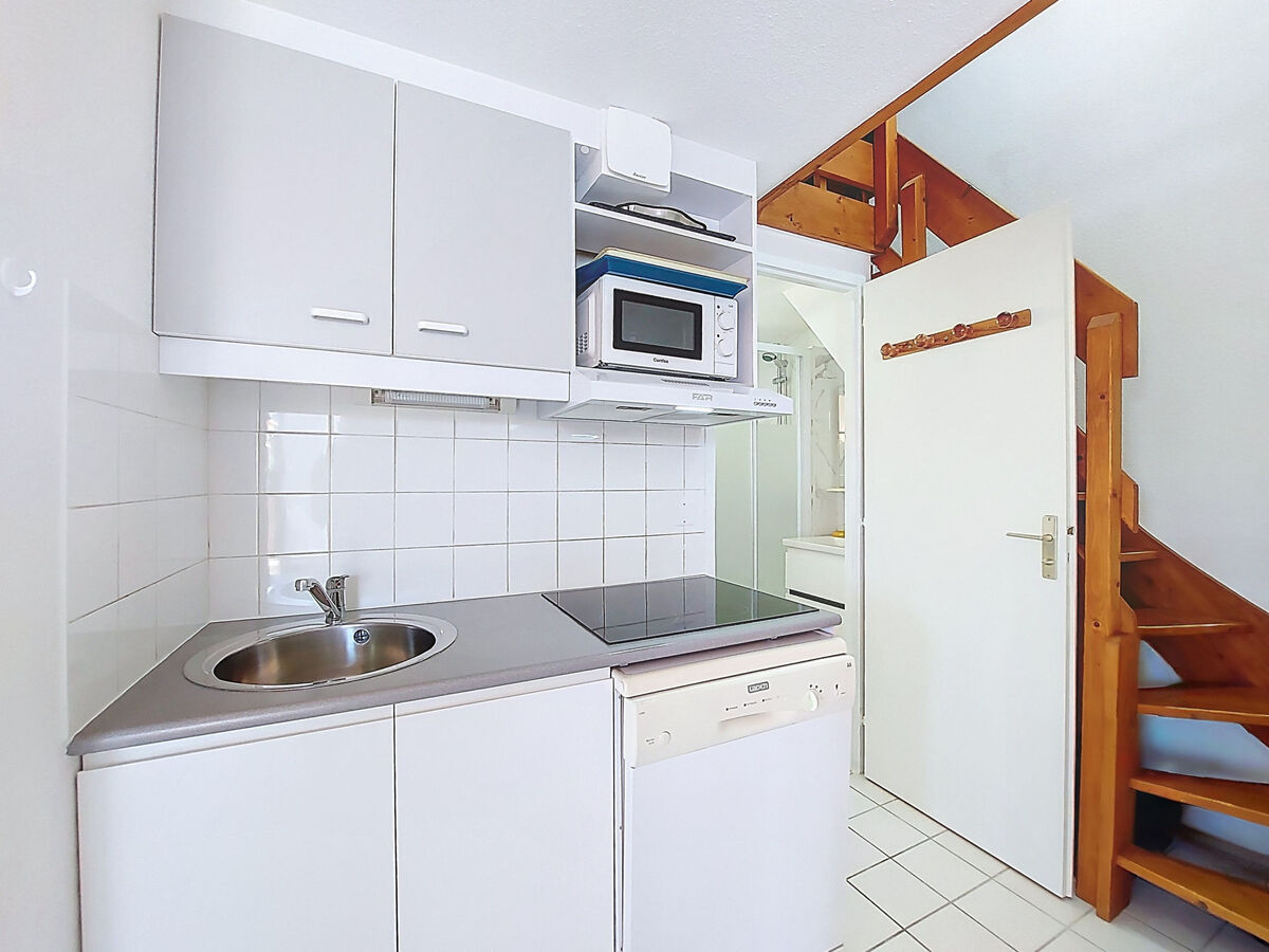 Cuisine ouverte (lave-vaisselle, 4 plaques vitrocéramiques, grille-pain, bouilloire électrique, micro-ondes, cafetière électrique).