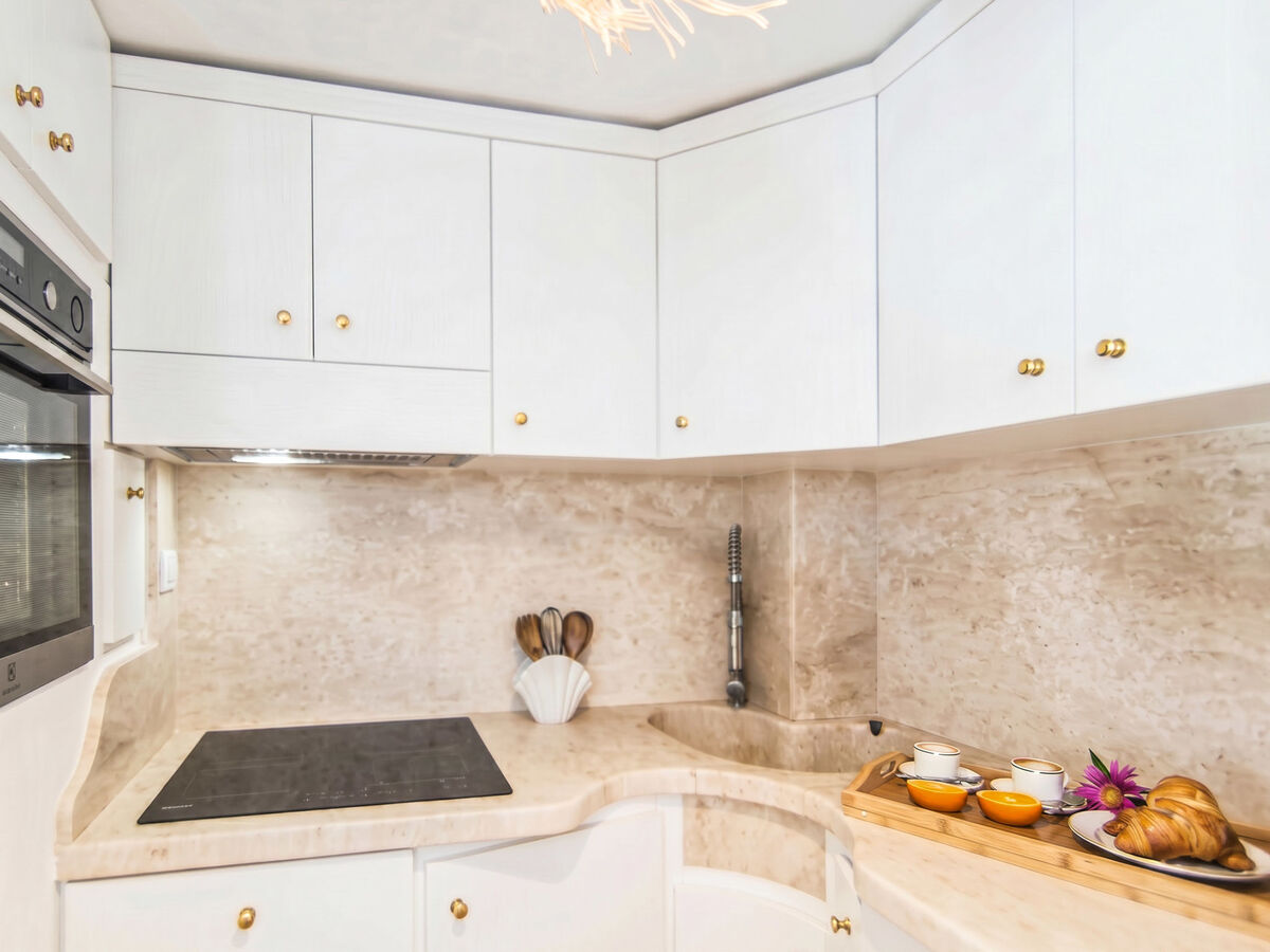 Petite coin cuisine (four, lave-vaisselle, 4 plaques à induction, grille-pain, bouilloire électrique, cafetière électrique).