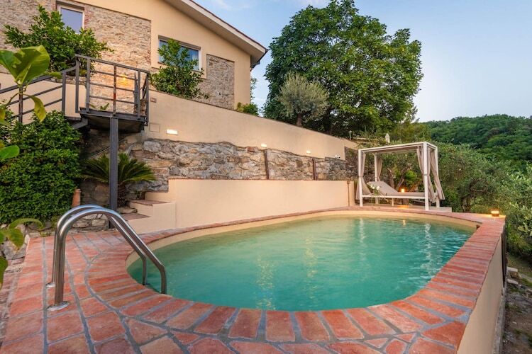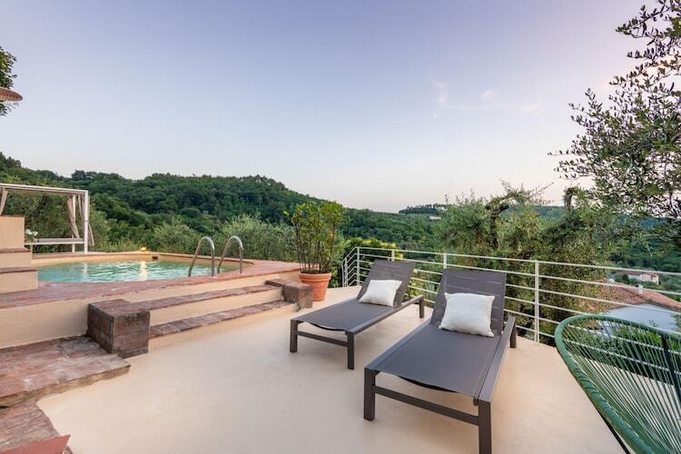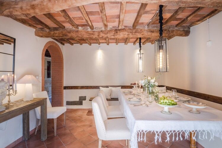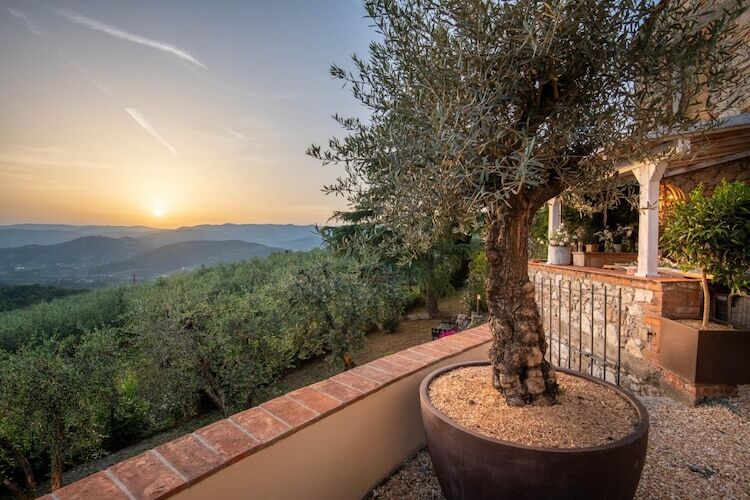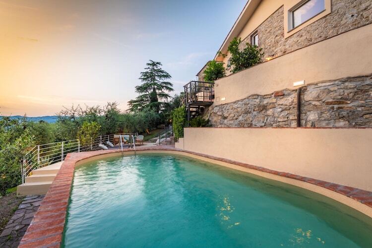 Nichée dans les collines enchanteresses de Monsummano Terme, cette ferme toscane allie à la perfection charme rustique et luxe moderne. Offrant une vue imprenable sur les paysages vallonnés, elle constitue un refuge idéal pour ceux qui recherchent la tranquillité. L'atout principal de ce refuge est une magnifique piscine panoramique, où vous pourrez vous détendre sur d'élégants transats ou profiter de l'ambiance sereine depuis un confortable salon extérieur. Les eaux cristallines reflètent l'horizon vibrant, vous invitant à vous immerger dans la beauté de la Toscane.