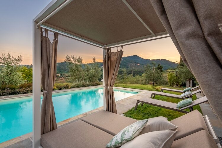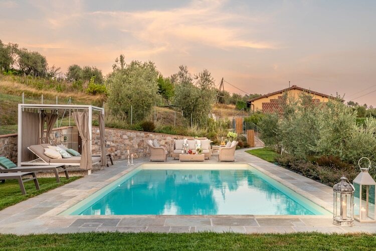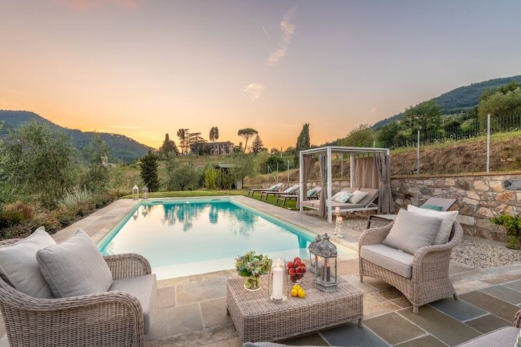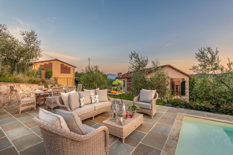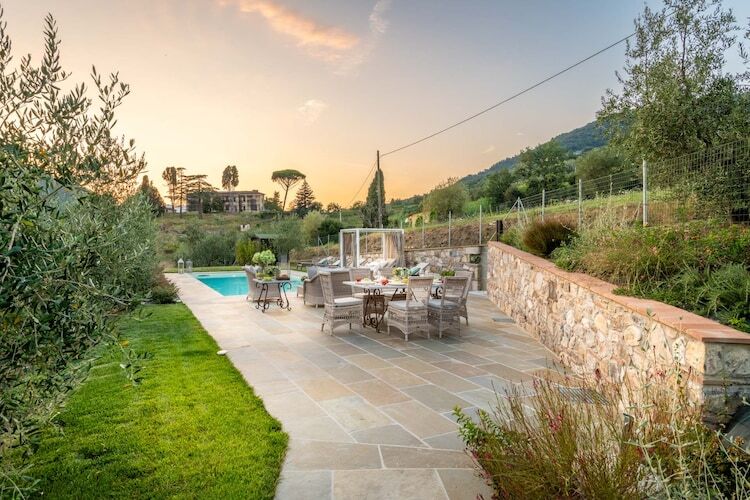 Nichée sur une paisible colline privée, à quelques minutes de la ville historique de Lucques, cette charmante villa offre un mélange unique d'élégance rustique et de confort moderne. Intégrée au célèbre domaine viticole biologique Valle del Sole, la propriété invite ses hôtes à s'immerger dans l'authentique art de vivre toscan. Offrant une vue panoramique sur les vignobles vallonnés et la campagne environnante, la ferme dispose d'une piscine rafraîchissante, de terrasses ensoleillées et d'intérieurs décorés avec goût, reflétant le charme intemporel de la région.
