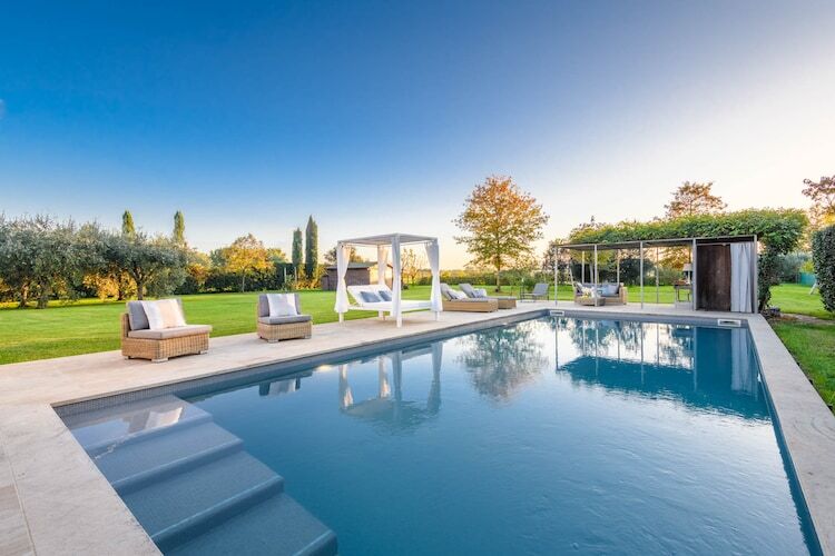 Nichée dans les collines ensoleillées de Toscane, cette charmante ferme contemporaine, avec ses 3 chambres luxueuses et ses 3 salles de bains élégantes, allie charme intemporel et confort moderne. Son extérieur traditionnel, avec son toit en terre cuite et ses murs en pierre rustique, rend hommage aux fermes classiques de la région. À l'intérieur, découvrez un design épuré, des espaces ouverts et des matériaux naturels et chaleureux. De grandes baies vitrées offrent une vue panoramique sur le jardin luxuriant et la piscine privée étincelante, insufflant la sérénité du paysage jusque dans votre maison. La douce lumière toscane scintille sur le mobilier contemporain, créant une atmosphère paisible et accueillante, à la fois fraîche et intemporelle.