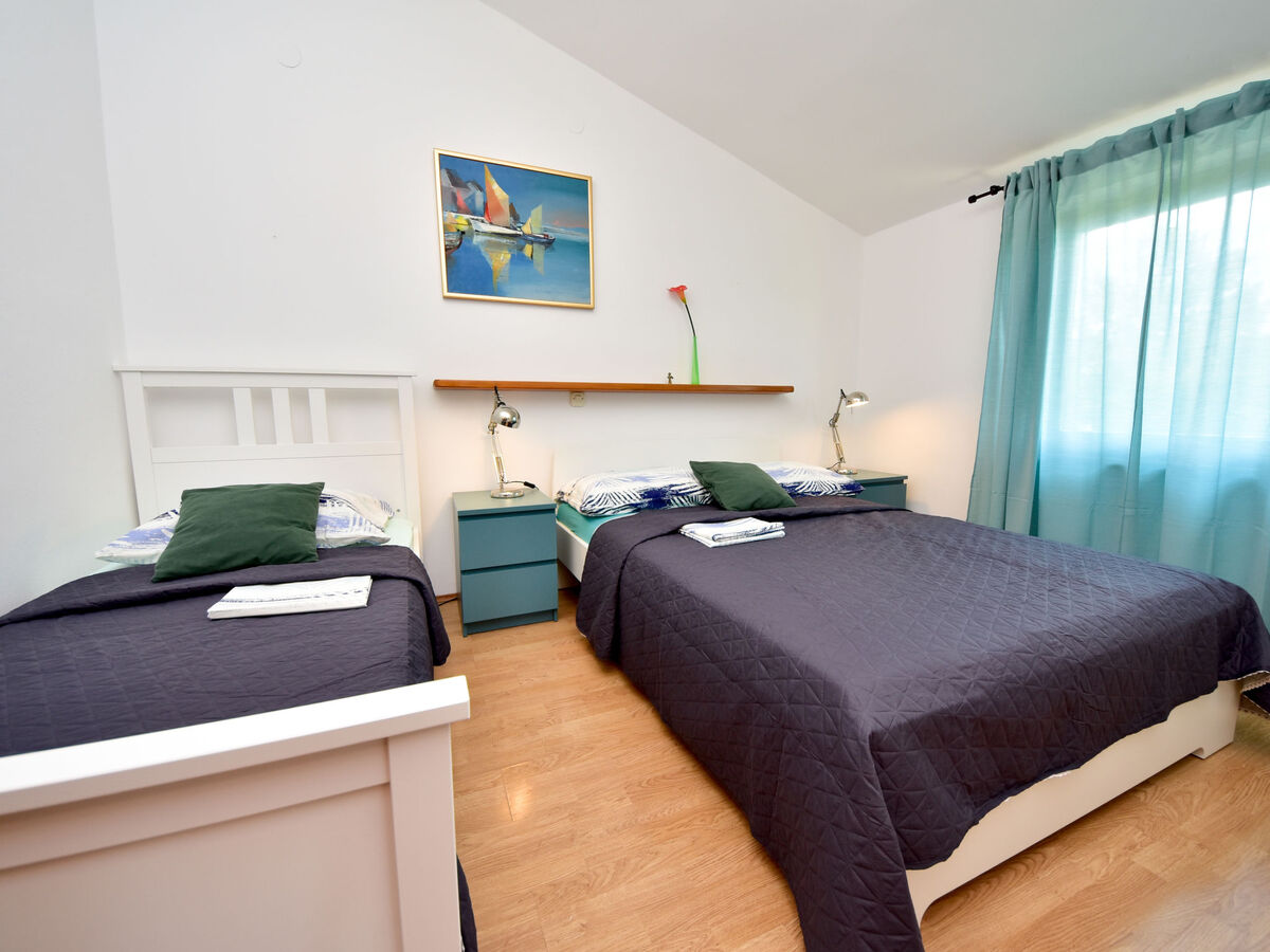 À 8 km du centre d'Obrovac, situation tranquille, ensoleillée, surélevée, à 250 m de la mer, à 250 m de la plage, dans la verdure.