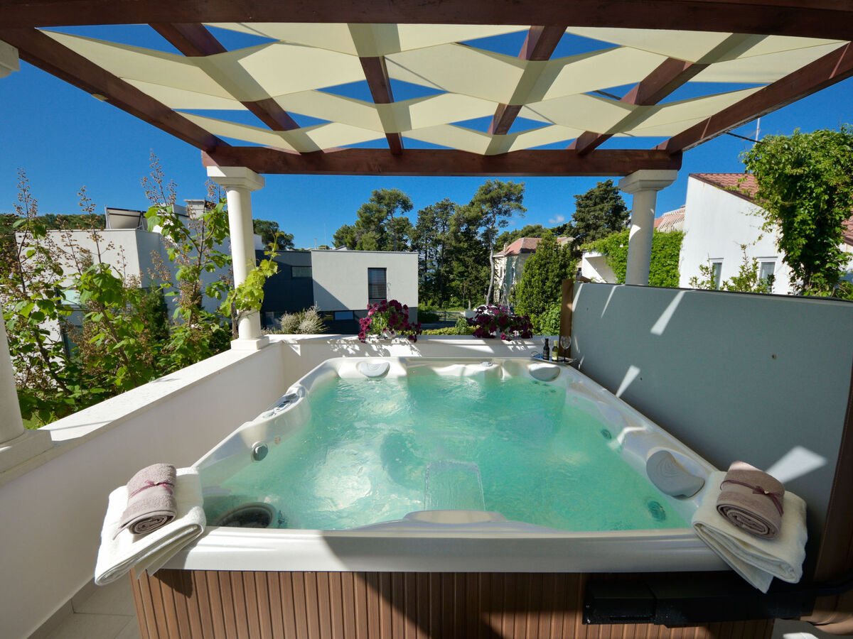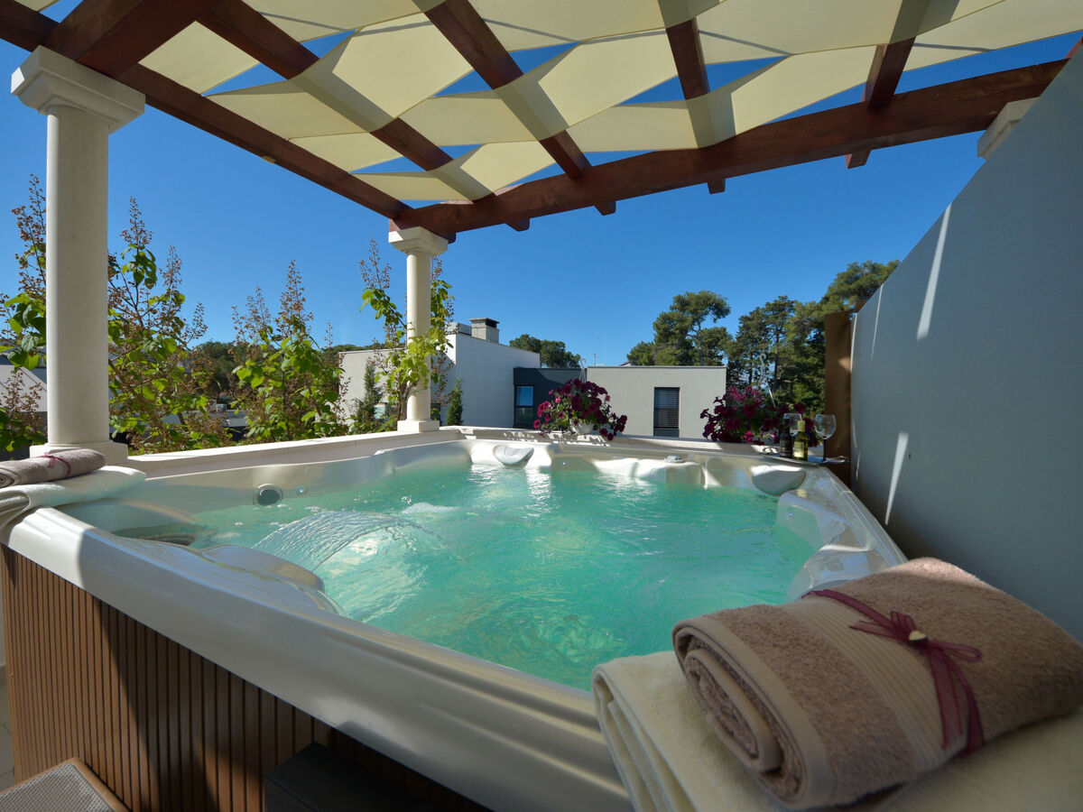 Bain à remous , meubles de jardin, barbecue (balançoire).