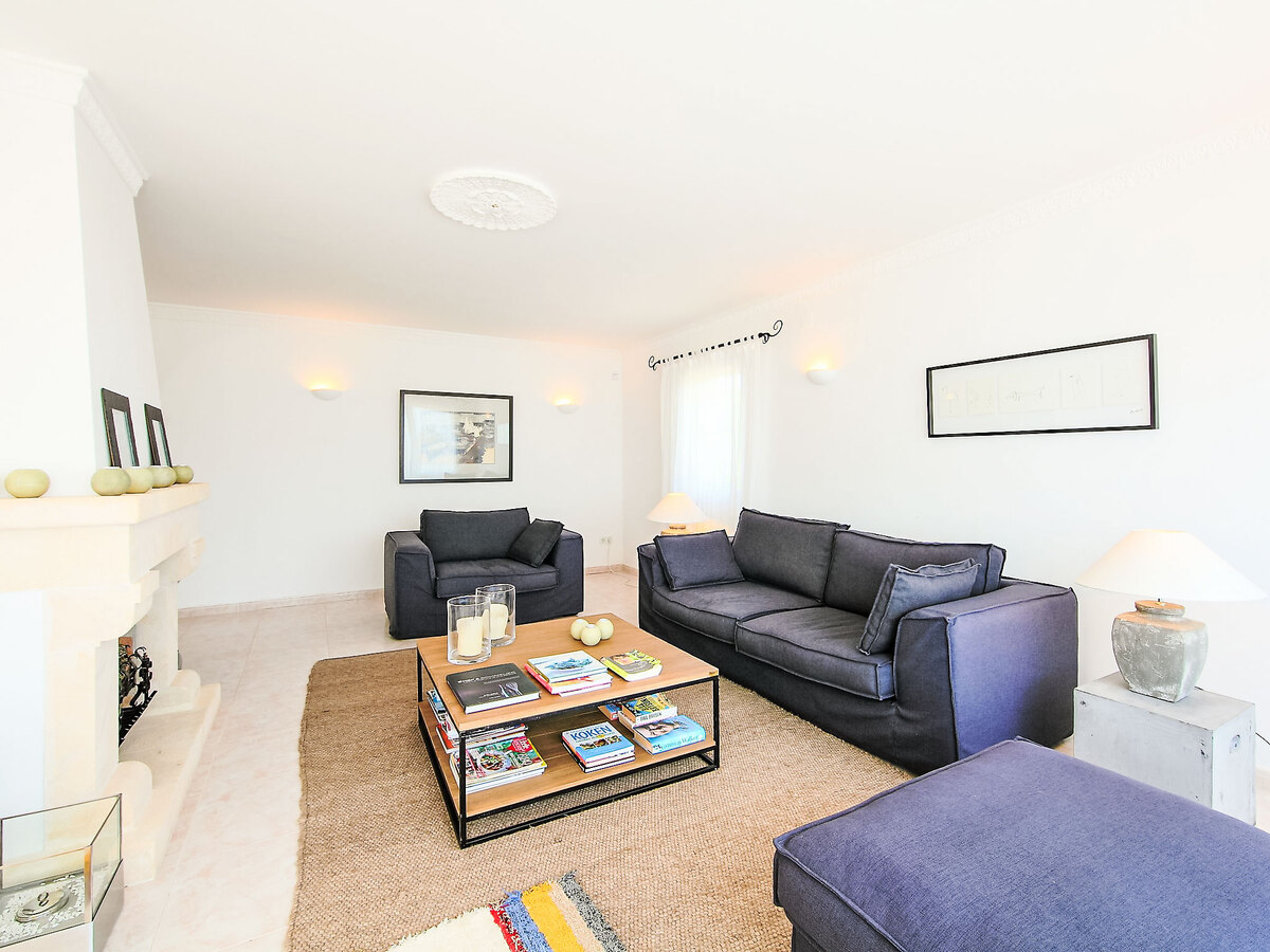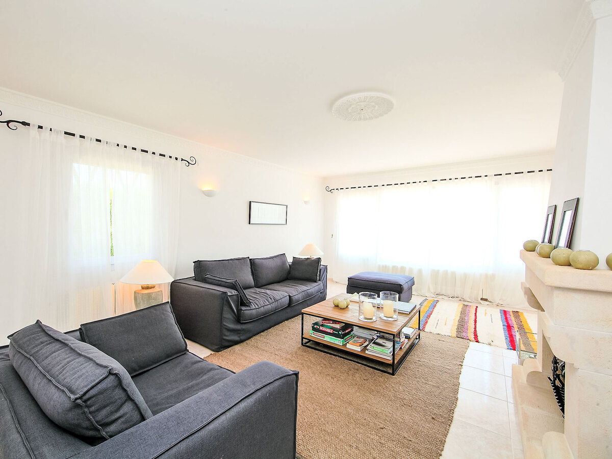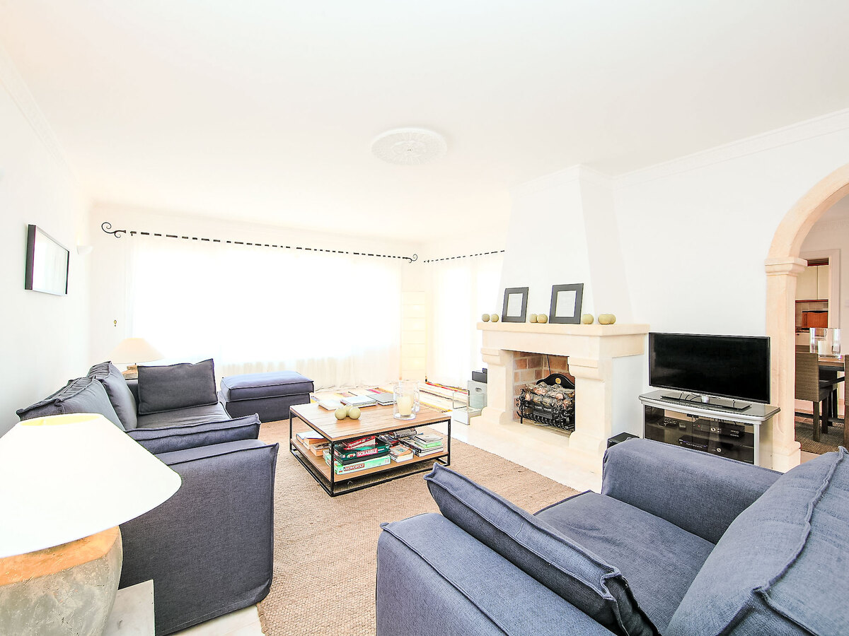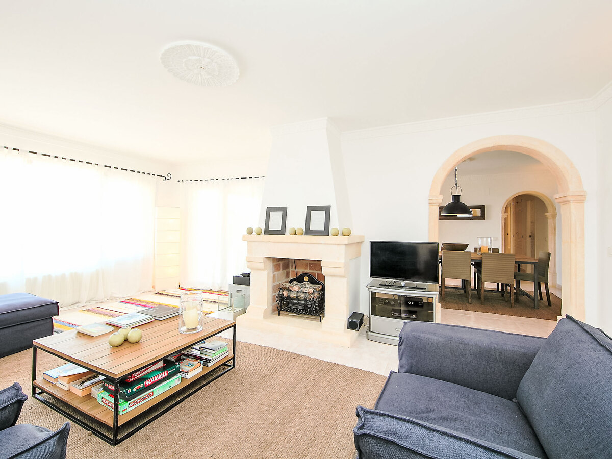 Séjour avec baie vitrée avec cheminée et TV (satellite).
