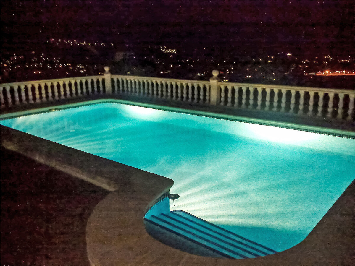 A usage privé: terrain 900 m2 (clôturé), jardin, piscine rectangulaire (5 x 10 m, profondeur 150 - 200 cm, disponibilité saisonnière: 01.Jan.
