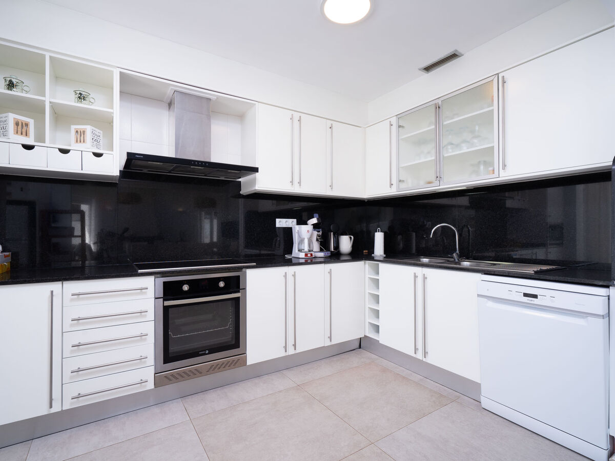 Cuisine ouverte (four, lave-vaisselle, X plaques vitrocéramiques, micro-ondes, congélateur).