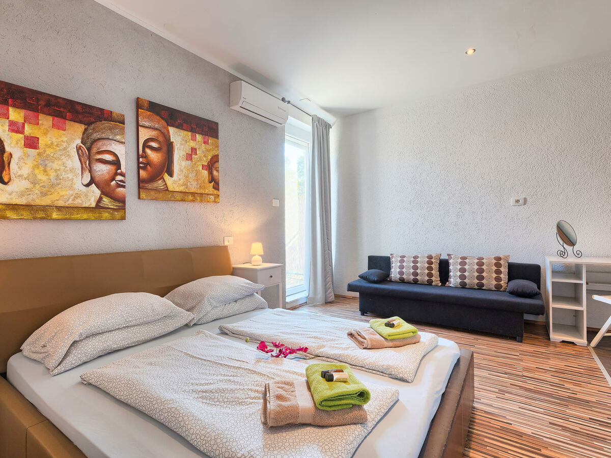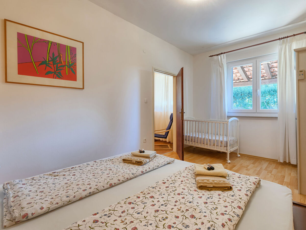 1 chambre avec 1 lit double (2 x 80 cm, longueur 200 cm), air-conditionné.