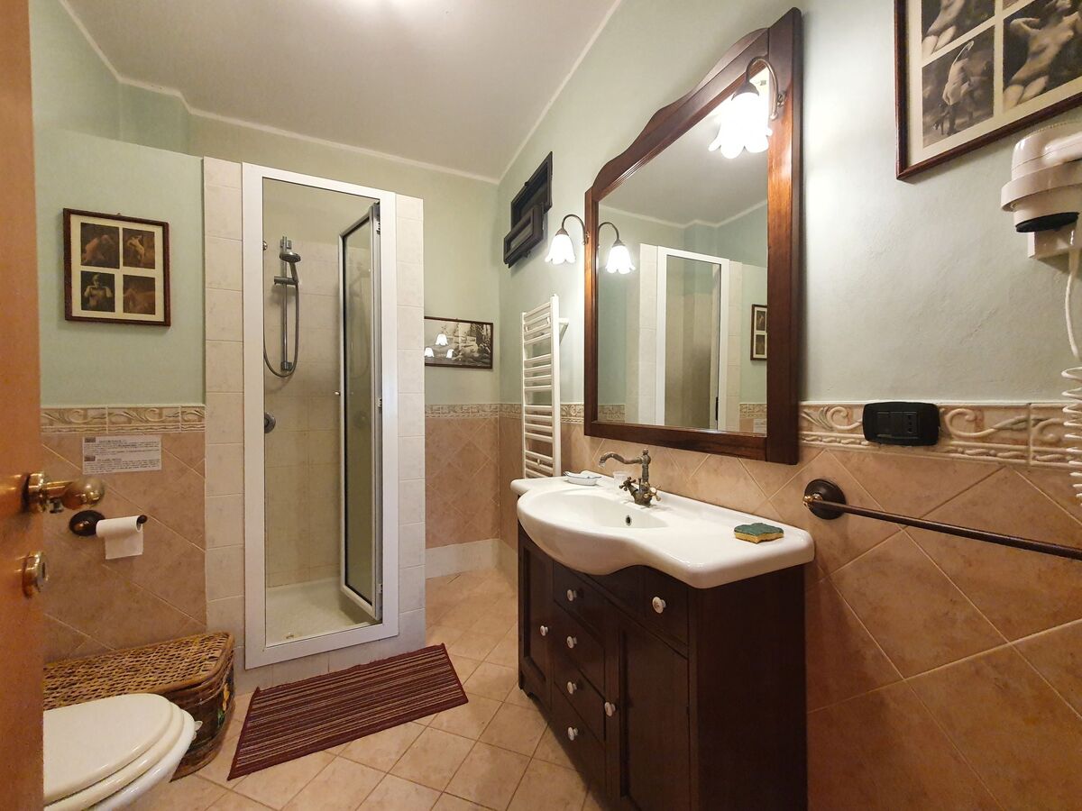 1 chambre double avec douche/bidet/WC, air-conditionné et chauffage à air chaud.