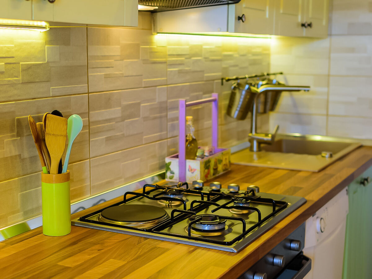 Cuisine ouverte (4 plaques de cuisson, four, lave-vaisselle, micro-ondes, congélateur).