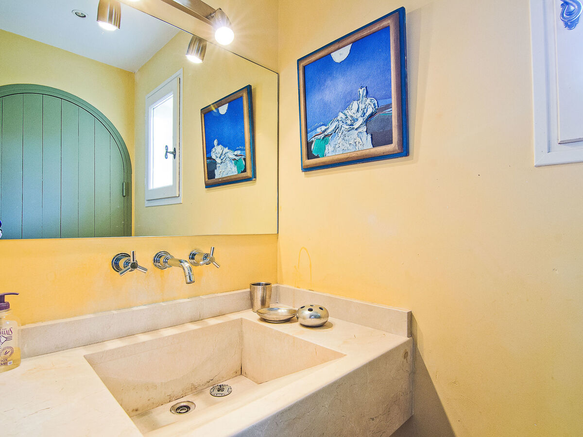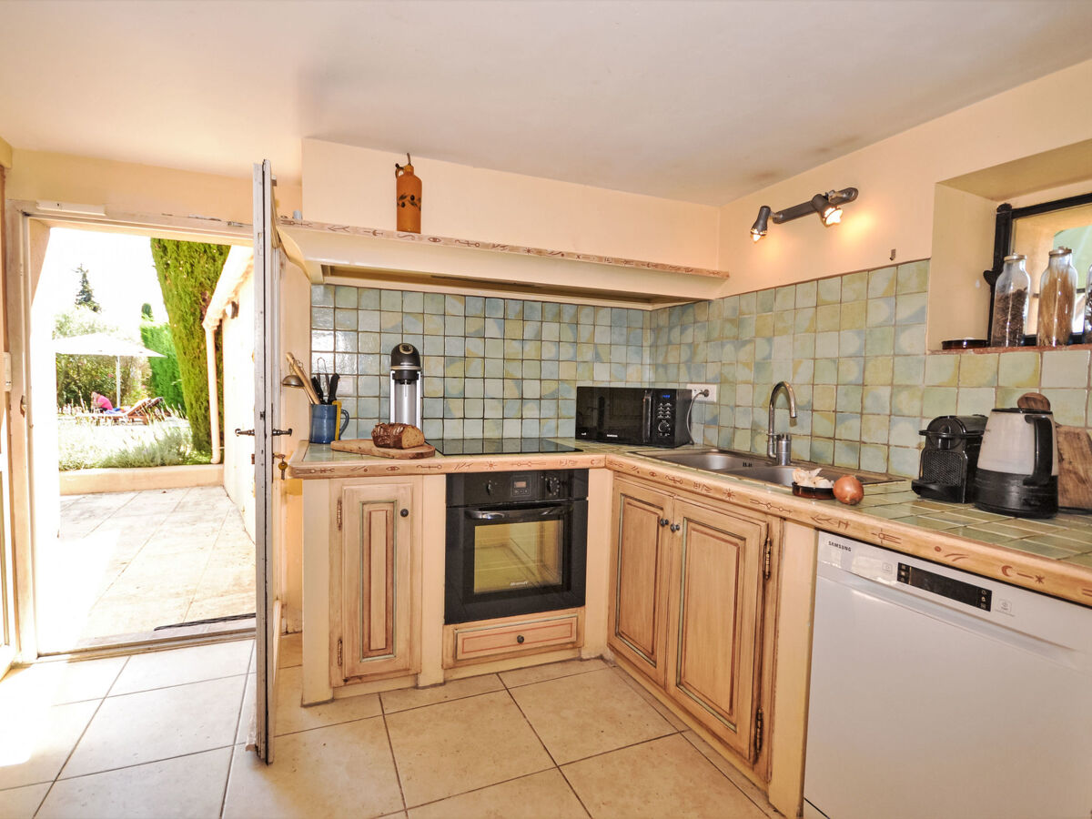 Elle abrite un très beau séjour de 60 m2 avec coin salle à manger séparés par des arcades, cheminée et chaîne stéréo. La cuisine est équipée de 4 plaques de cuisson, d'un four, d'un four à micro-ondes et d'un lave-vaisselle.