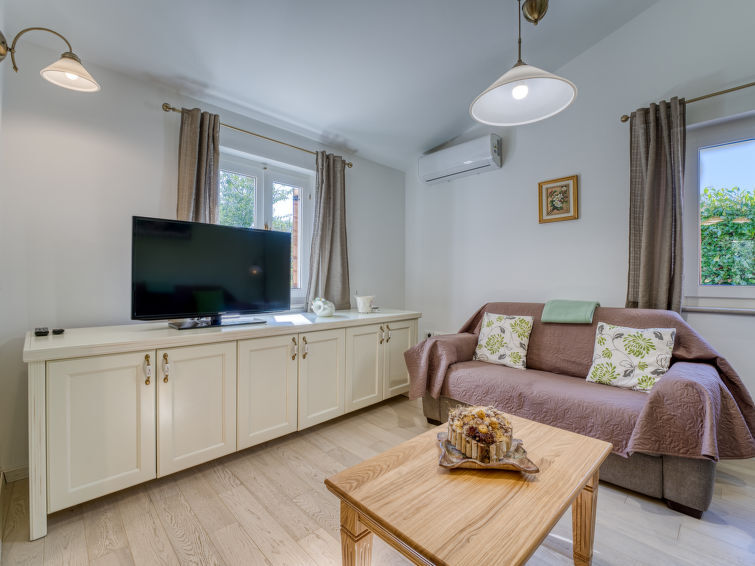 Séjour/salle à manger avec 1 divan-lit double (160 cm, longueur 190 cm), TV (satellite) (écran plat), air-conditionné.