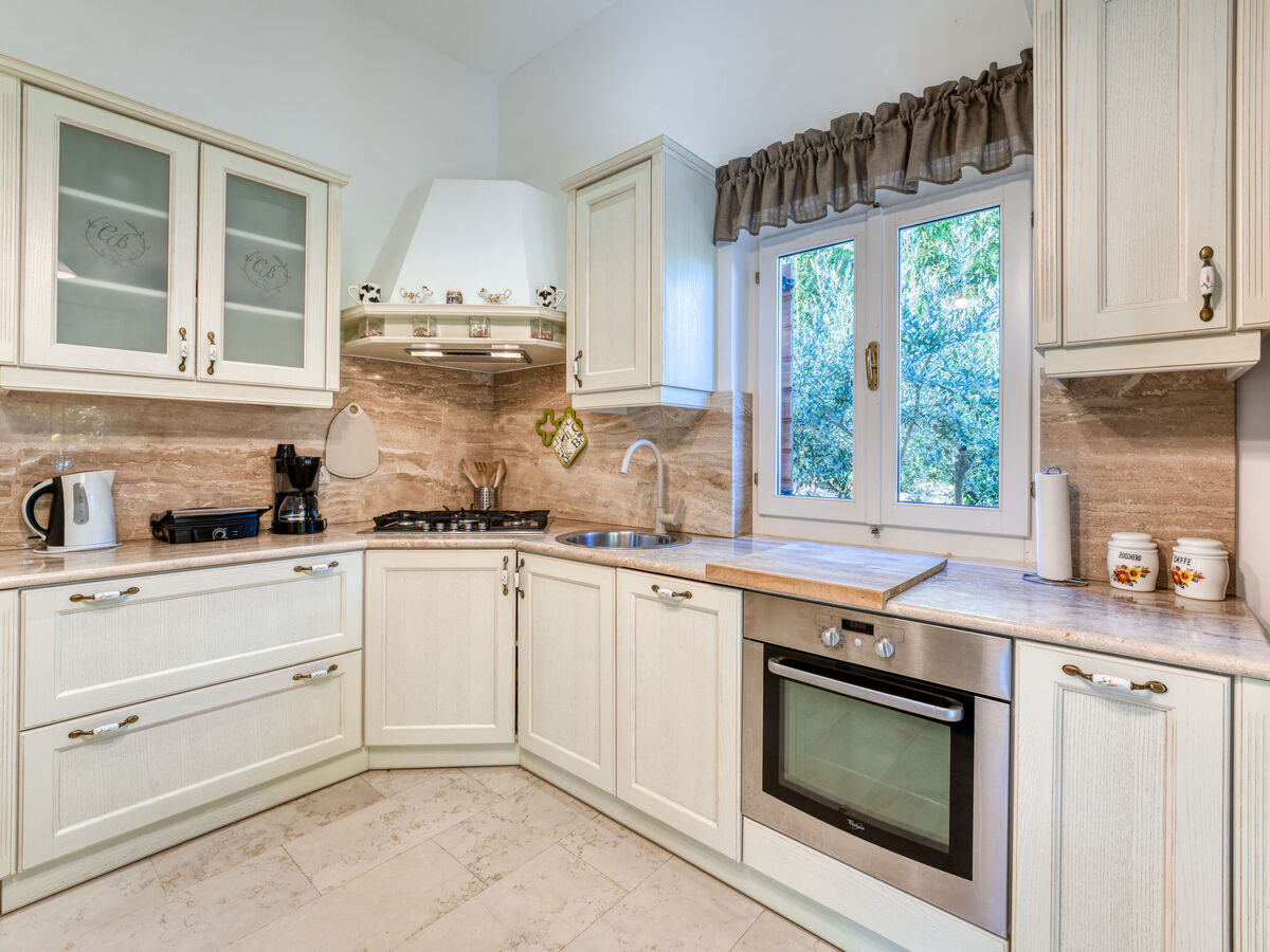 Cuisine ouverte (4 plaques de cuisson, four, lave-vaisselle, cafetière électrique).