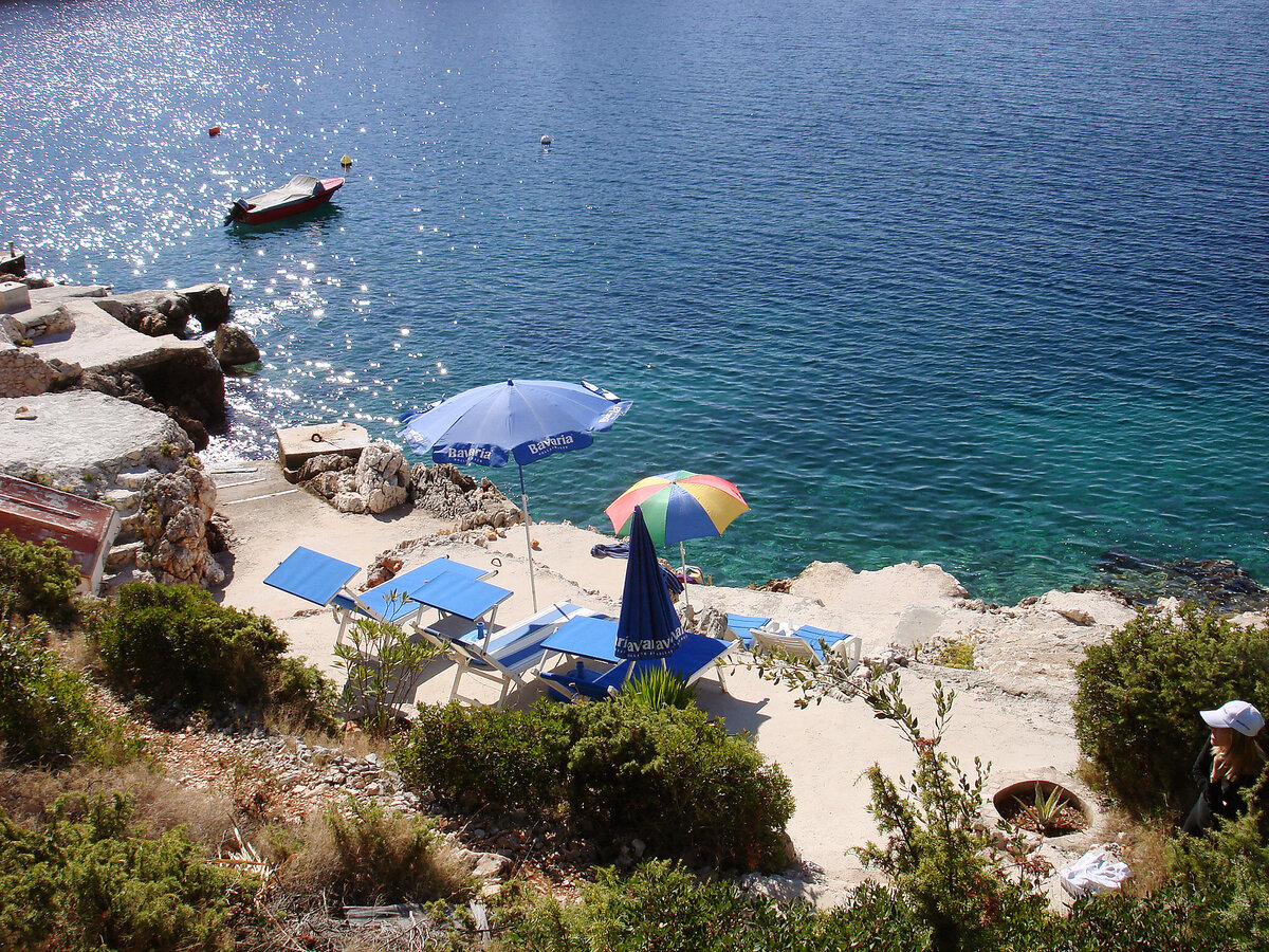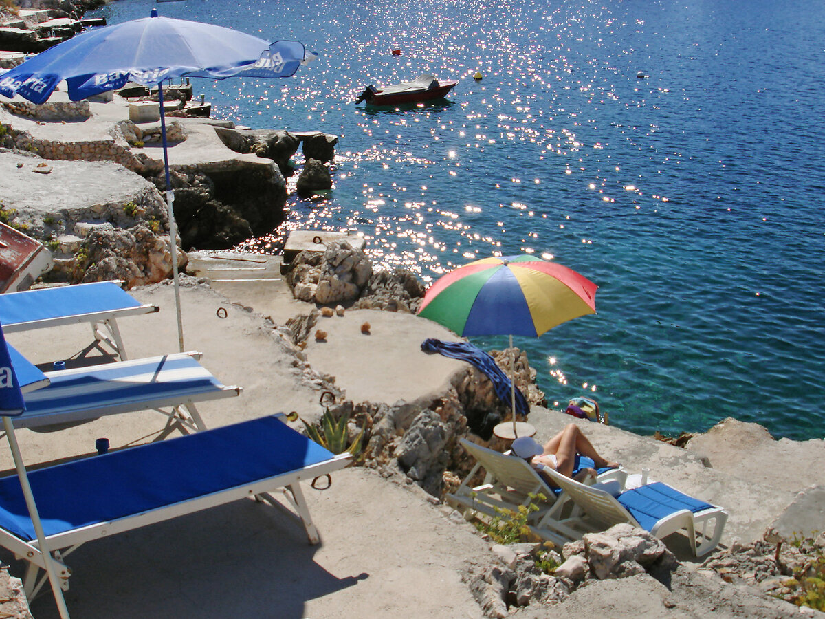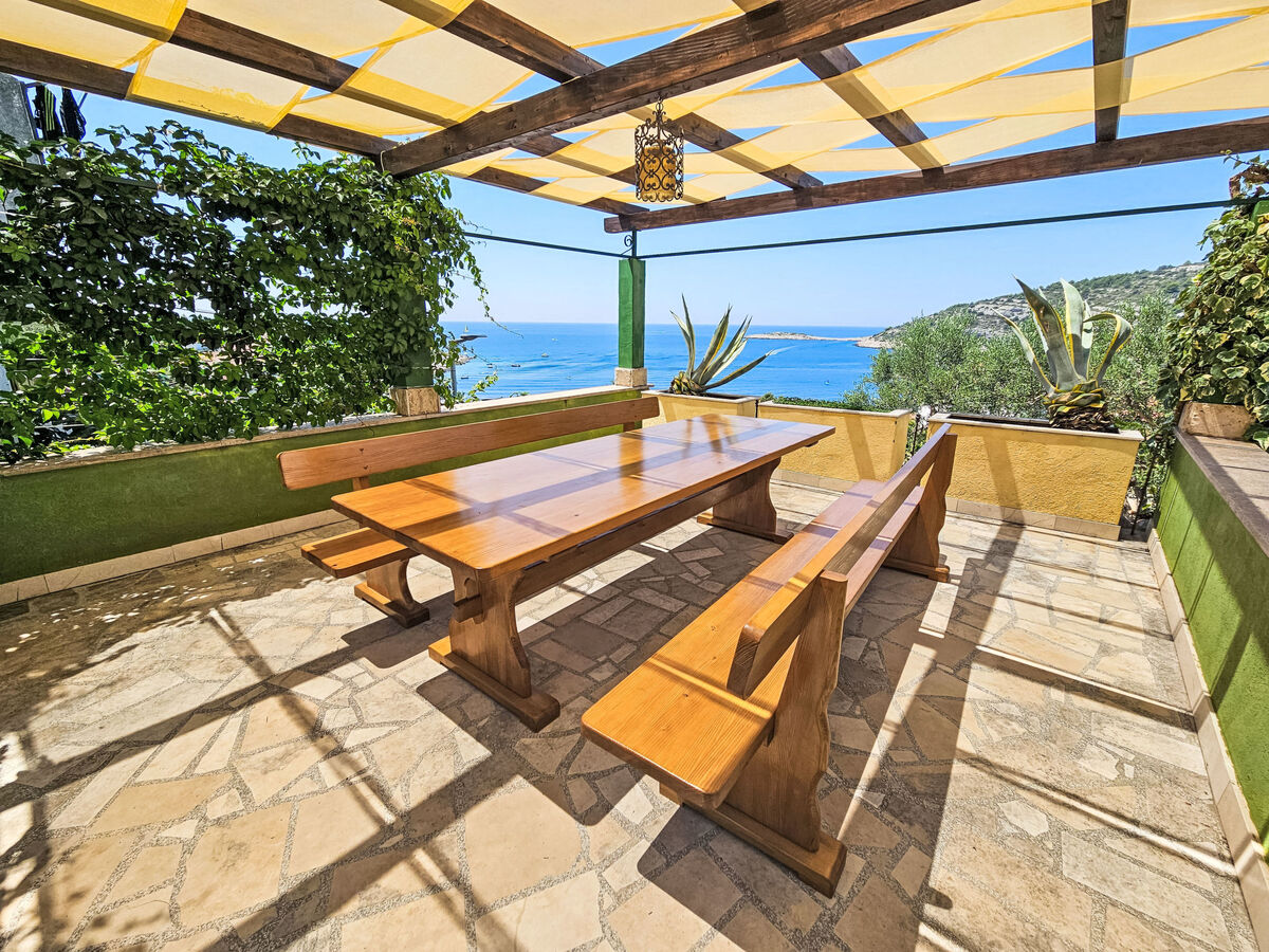 Situation tranquille, ensoleillée sur un versant, à 90 m de la mer, à 90 m de la plage, dans une impasse.