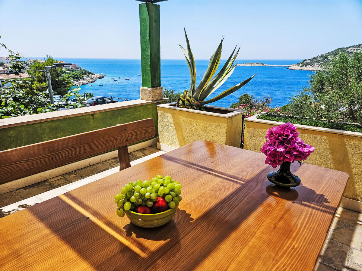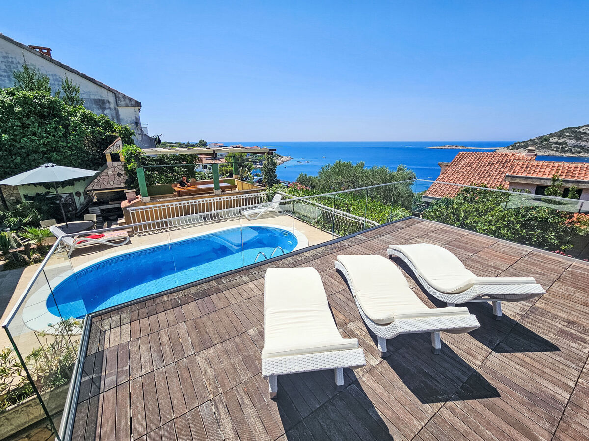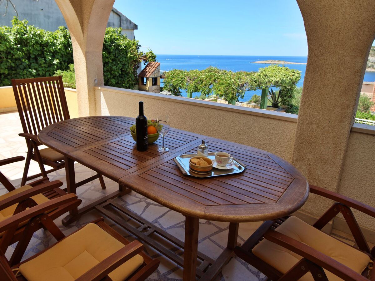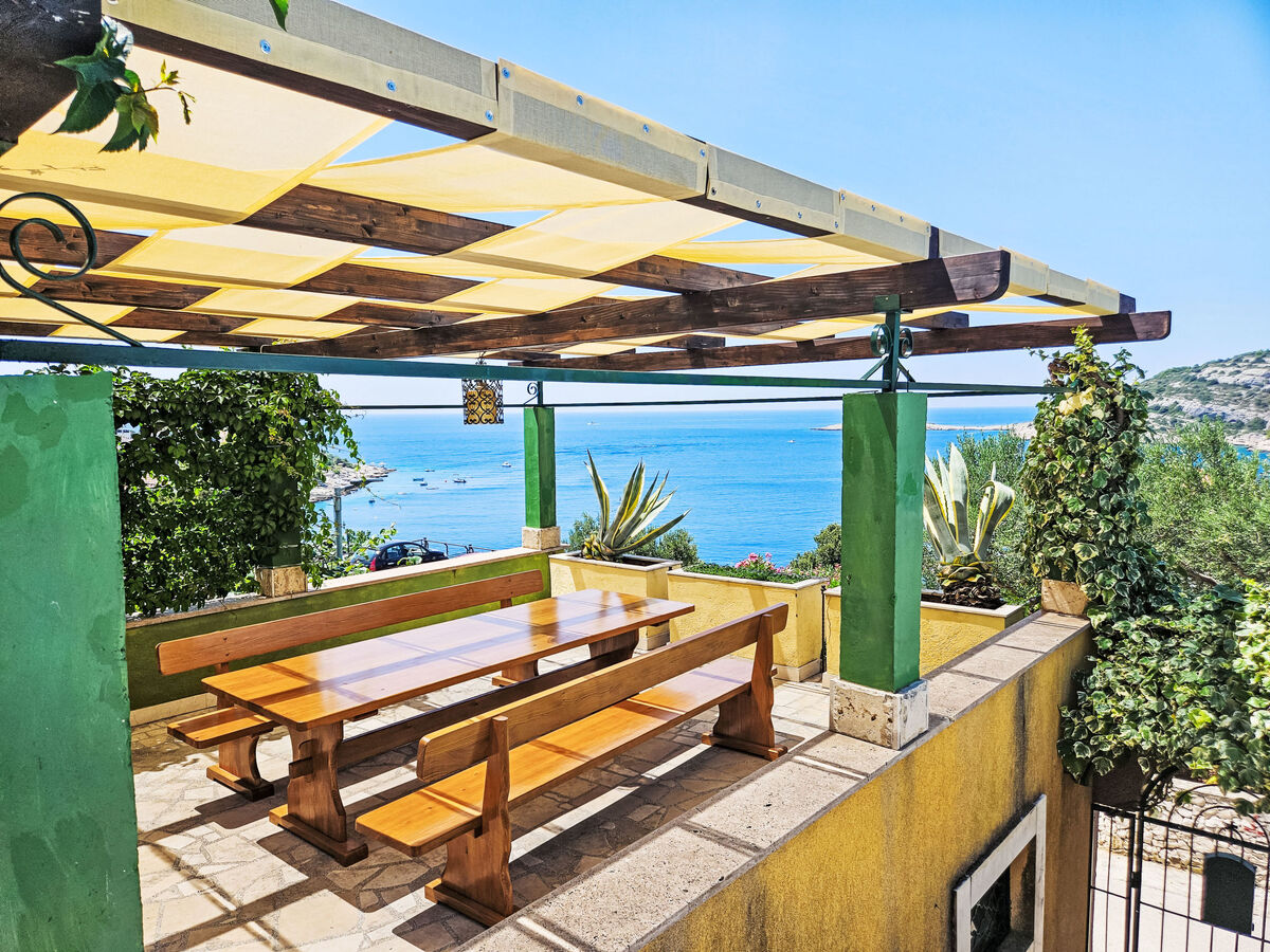 Situation tranquille, ensoleillée sur un versant, à 90 m de la mer, à 90 m de la plage, dans une impasse.