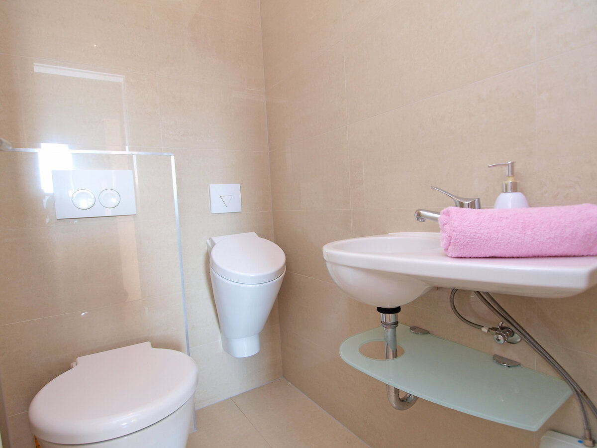 Magasins, restaurant 500 m, arrêt de bus 6.4 km, plage de rochers, plage bétonnée 90 m.