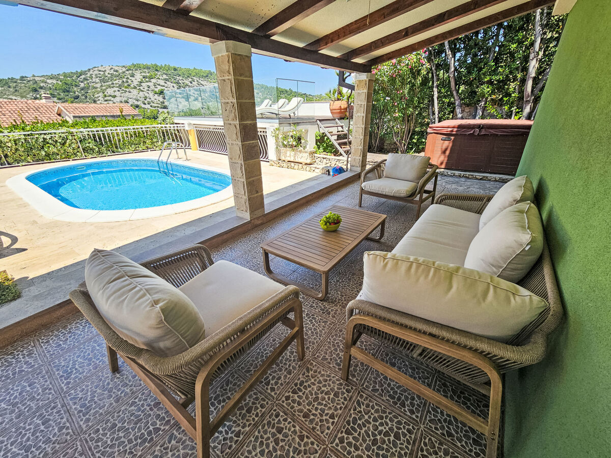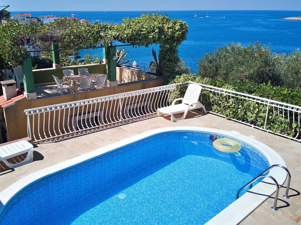 A usage privé: petit jardin plantes et arbres, piscine chauffée (6 x 3 m, profondeur 150 cm, disponibilité saisonnière: 10.Jun.