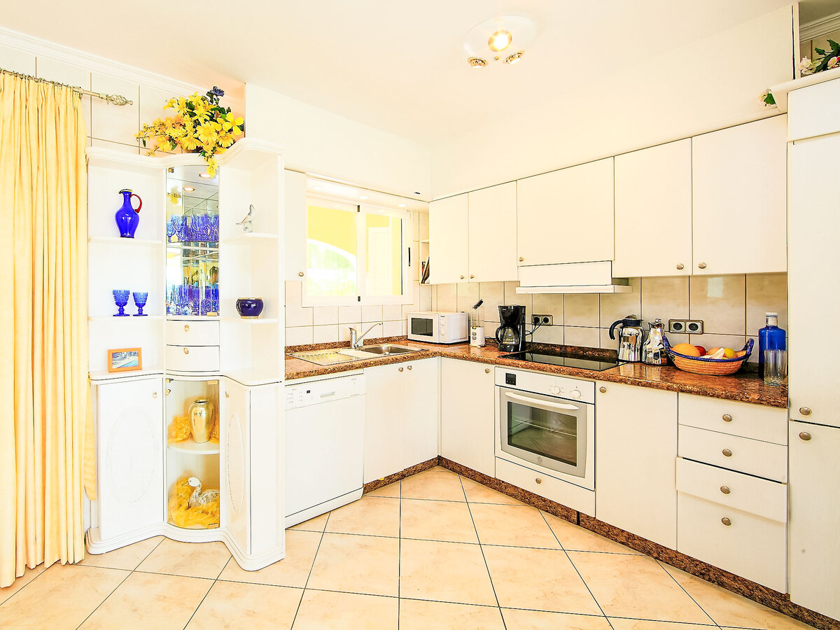 Grande cuisine ouverte (four, lave-vaisselle, 3 plaques vitrocéramiques, micro-ondes, congélateur, cafetière électrique).