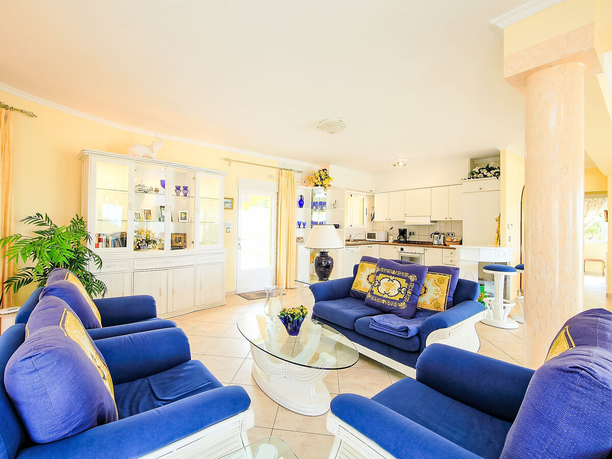 Spacieux et clair, aménagement très agréable: grand séjour/salle à manger avec jardin d'hiver avec TV (satellite) et air-conditionné.