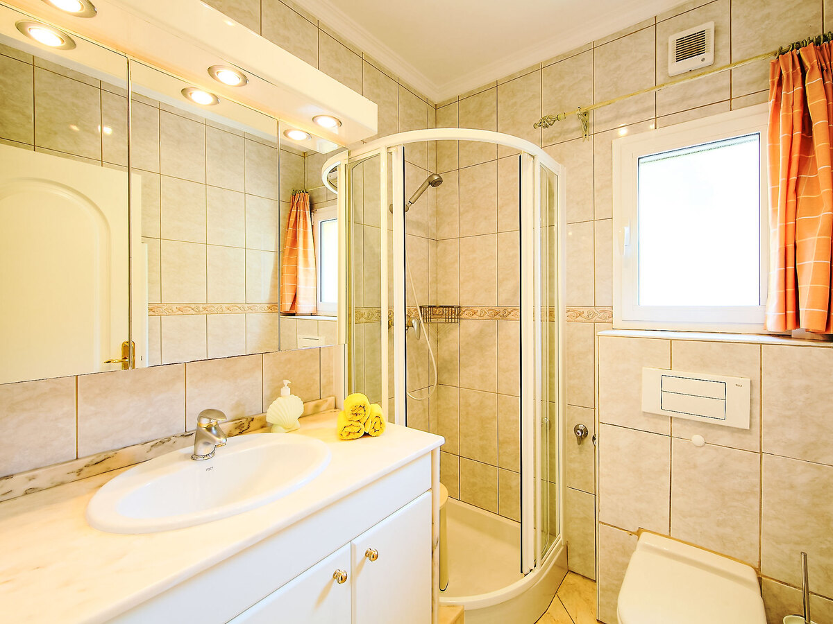 1 chambre double avec 1 grand-lit (2 x 90 cm, longueur 200 cm), douche/WC et air-conditionné.