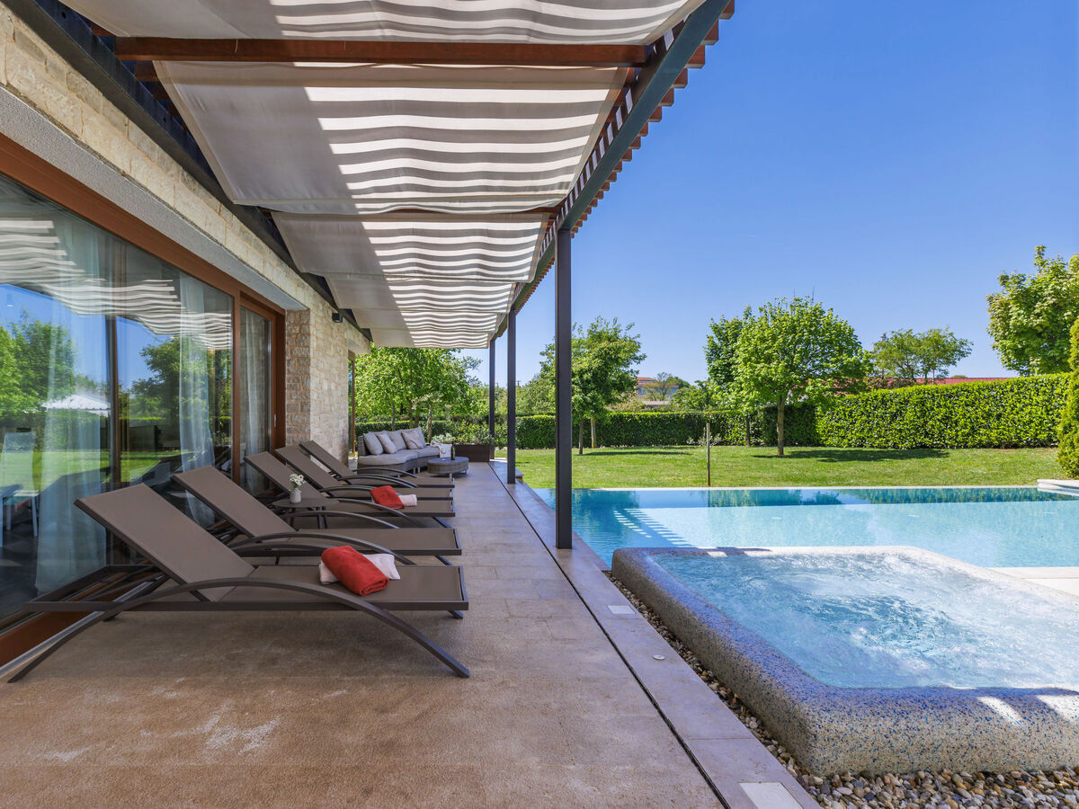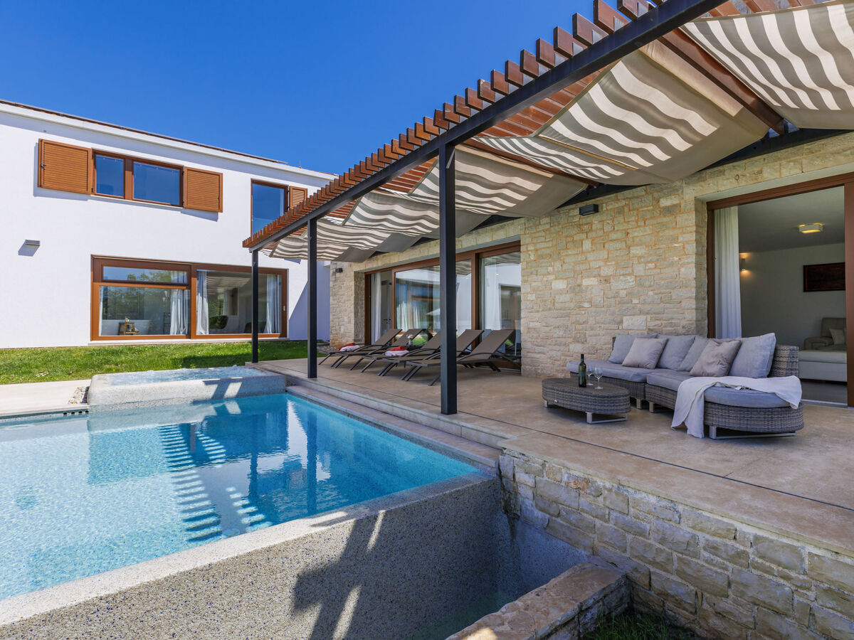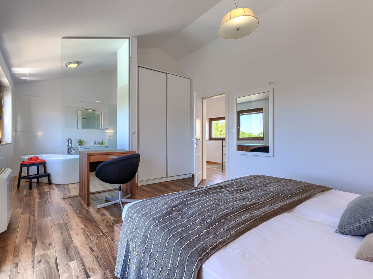 À 4 km du centre de Žminj, à 13 km du centre de Pazin, situation tranquille, ensoleillée, à 27 km de la mer.