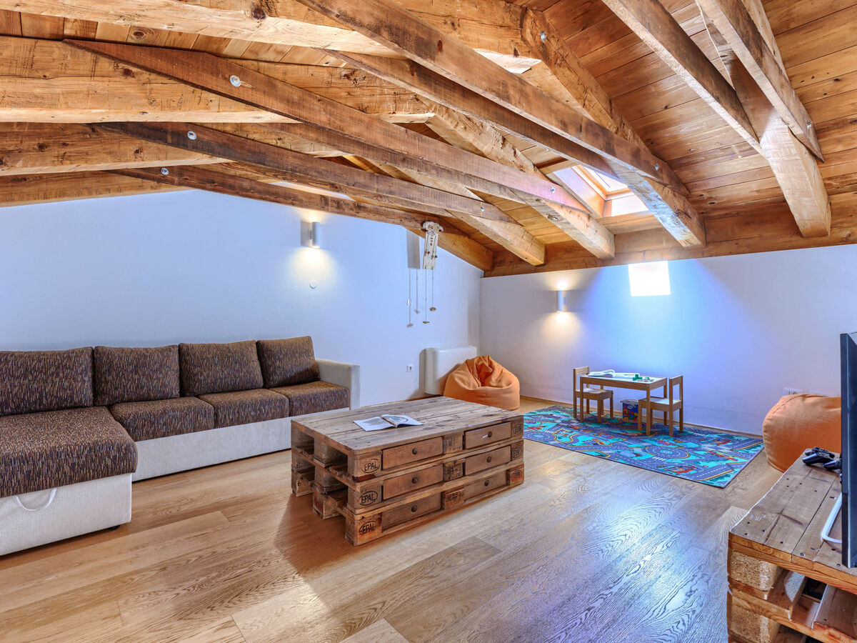 Galerie ouverte avec 1 divan-lit (120 cm, longueur 190 cm), TV (satellite) (écran plat), chaîne stéréo et DVD.
