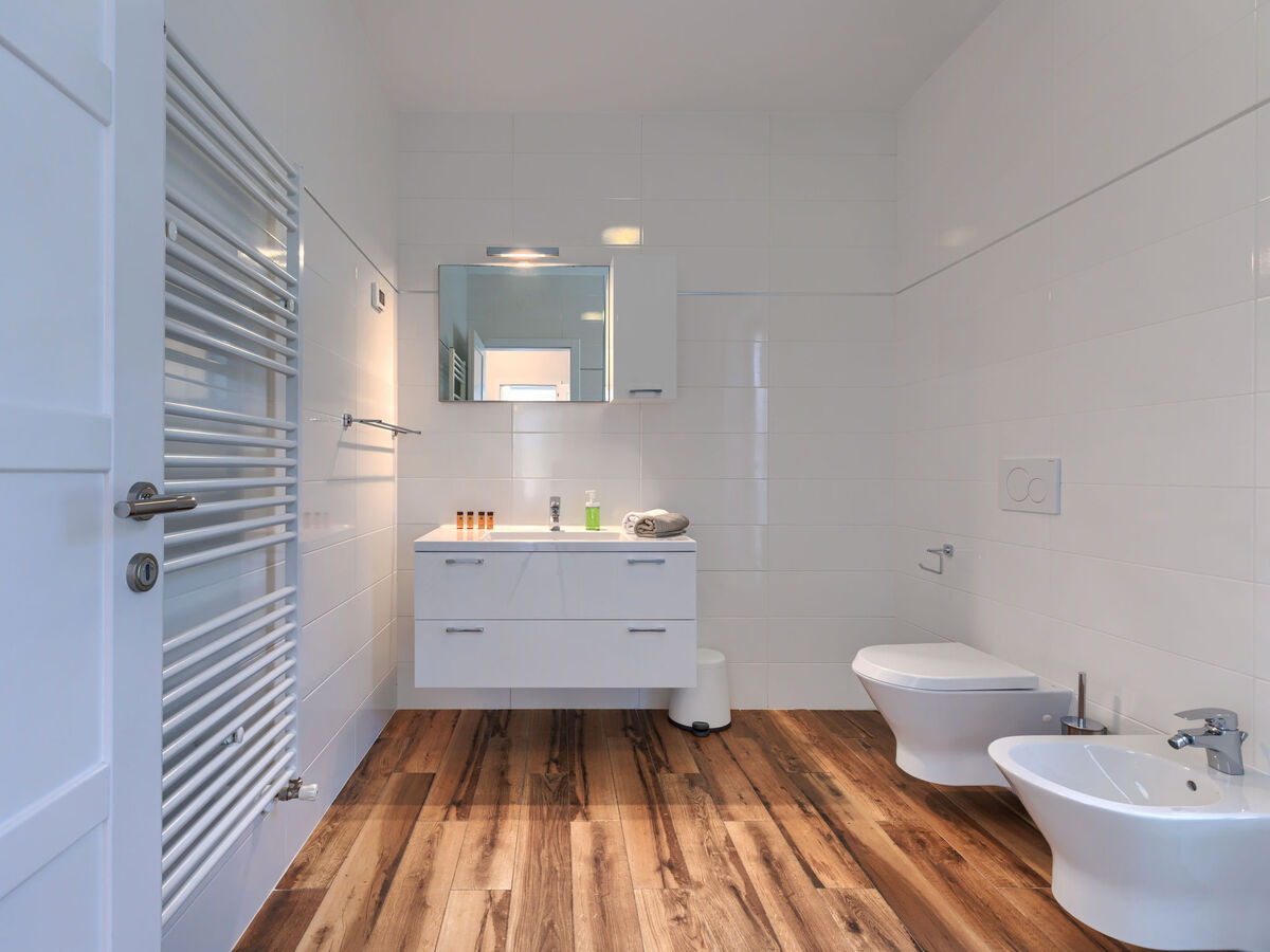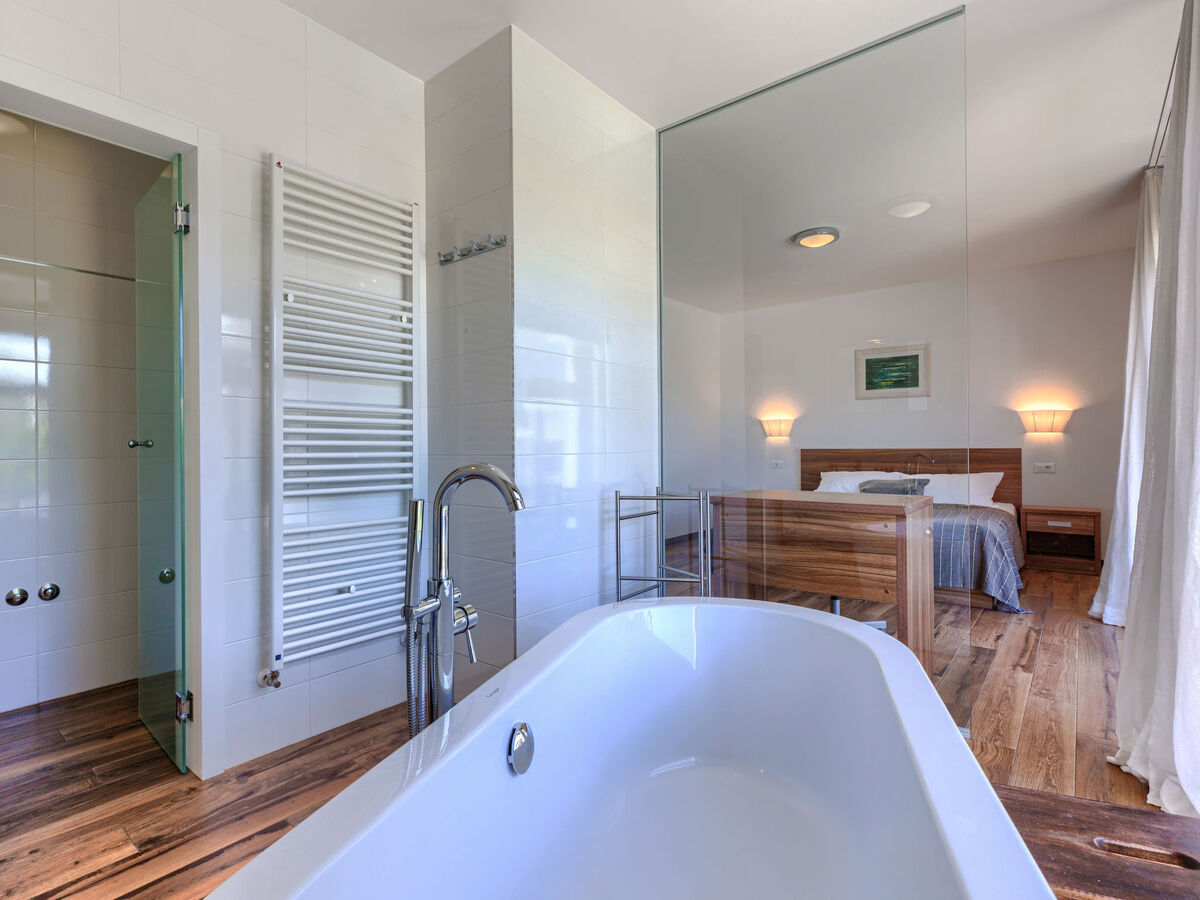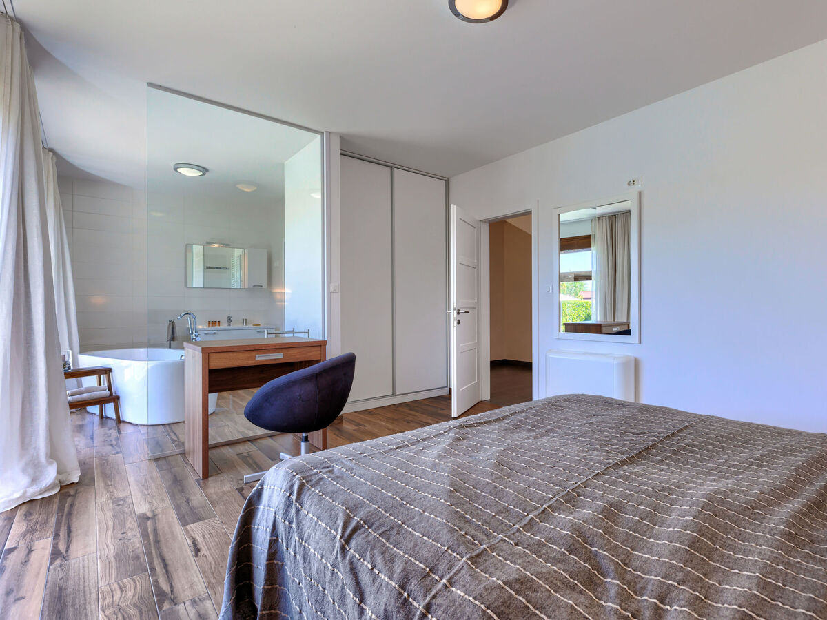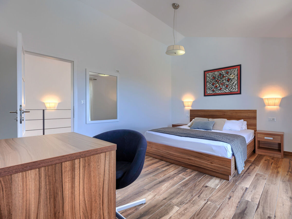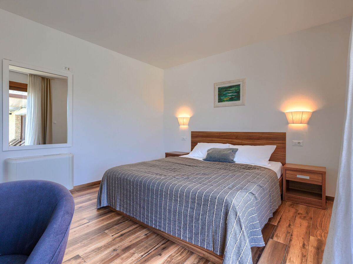 1 chambre avec 1 grand-lit (180 cm, longueur 200 cm), bain/bidet/WC et air-conditionné.
