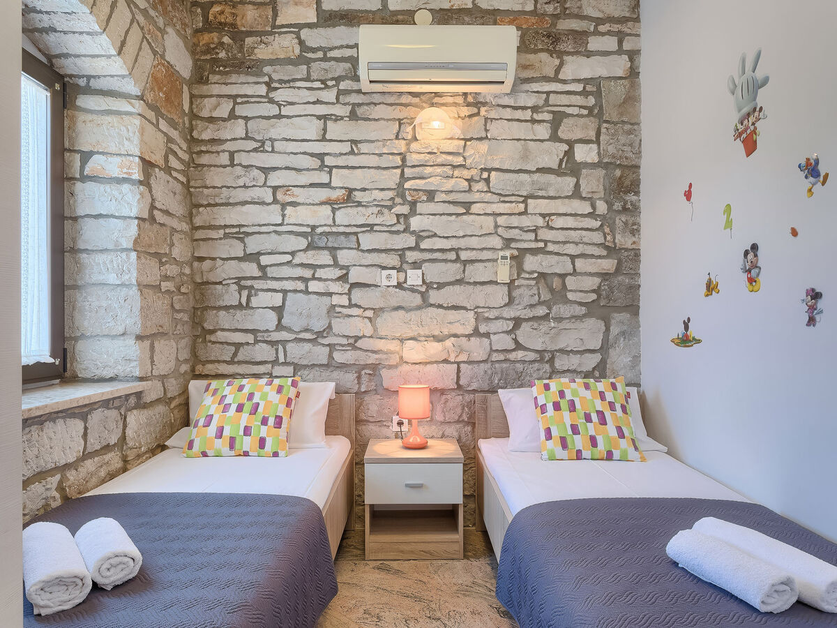 1 chambre avec 2 lits (80 cm, longueur 190 cm), air-conditionné.