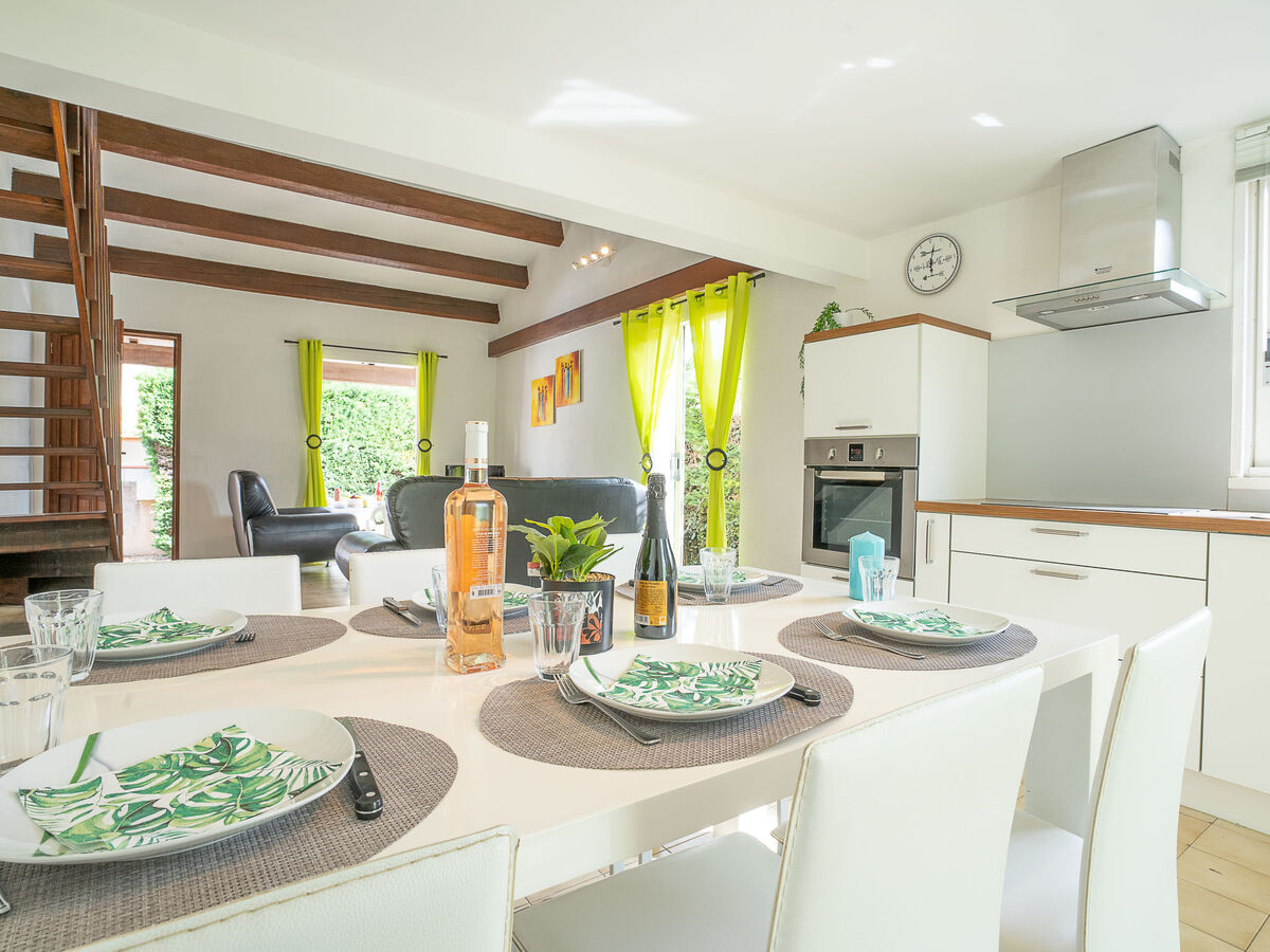 Cette belle demeure dispose de deux terrasse (45 m² et de 60 m²) et d'un grand jardin. Ces espaces sont équipés de meubles de terrasse et d'un barbecue électrique. La piscine est destinée à un usage commun avec les autres vacanciers. Sa superficie est de 21 x 10 m.