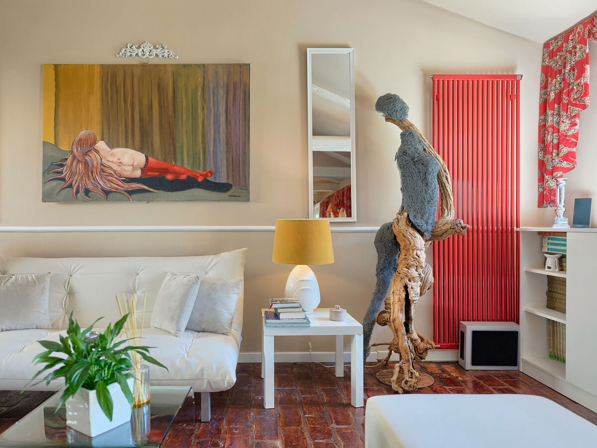 Aménagement confortable: séjour/salle à manger avec cheminée (uniquement à titre de décoration), TV (satellite) (écran plat), air-conditionné.