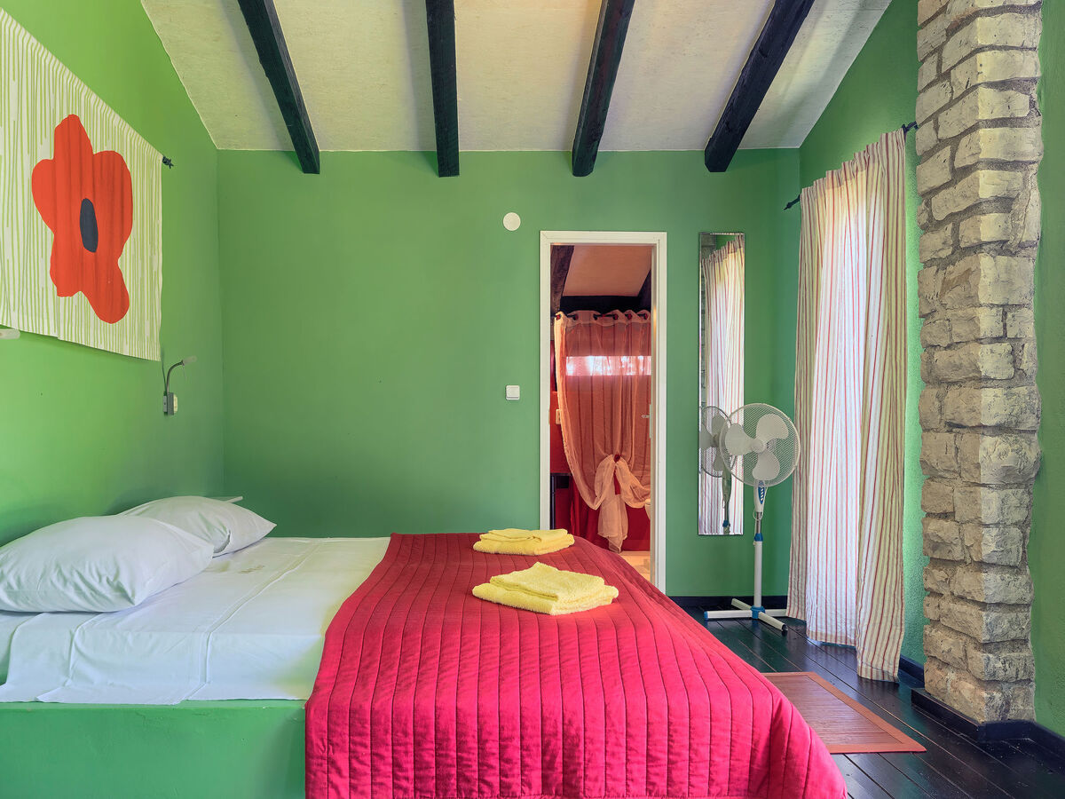 1 chambre avec 1 grand-lit (180 cm, longueur 200 cm).