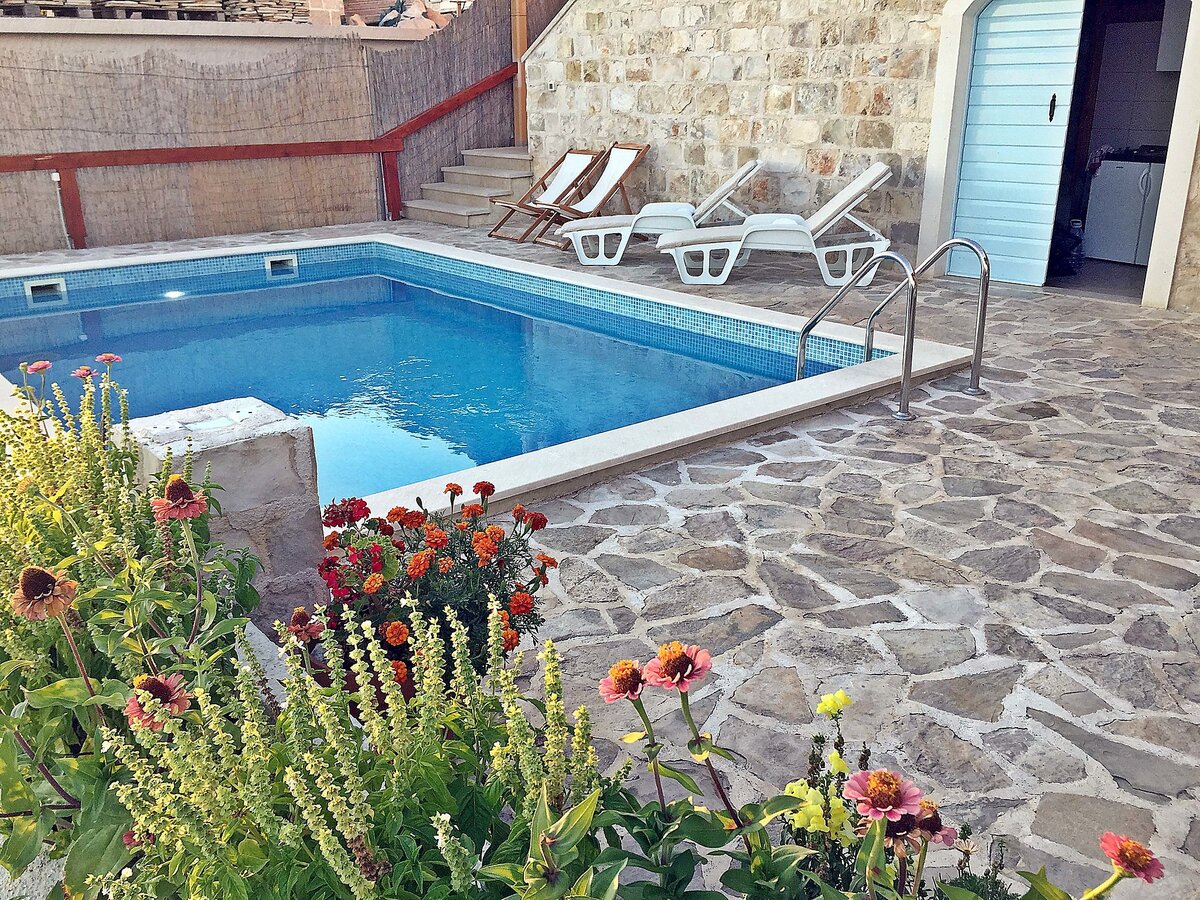 A usage privé: terrain 400 m2 (clôturé), piscine rectangulaire (4 x 6 m, profondeur 150 cm, disponibilité saisonnière: 01.Mai.
