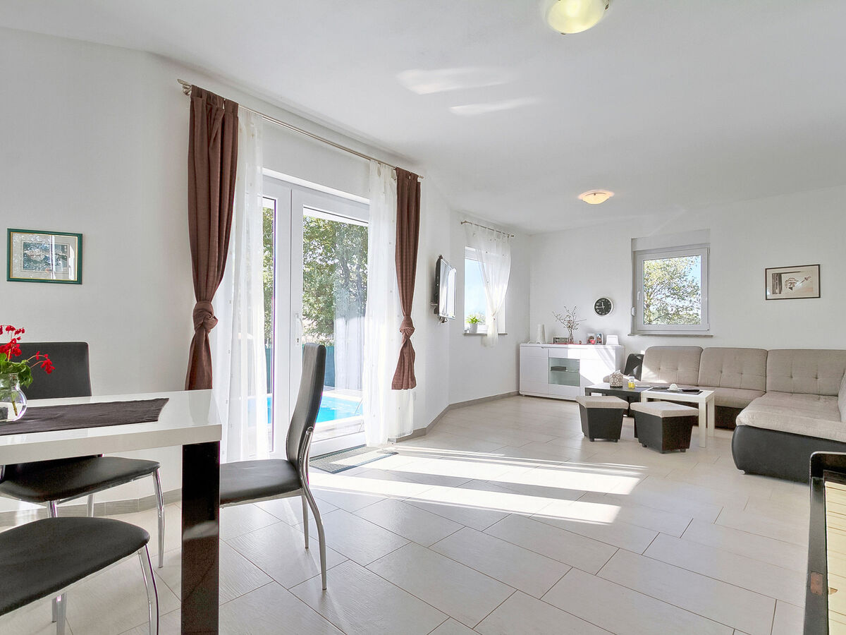 Séjour/salle à manger avec TV (satellite) (écran plat), air-conditionné.