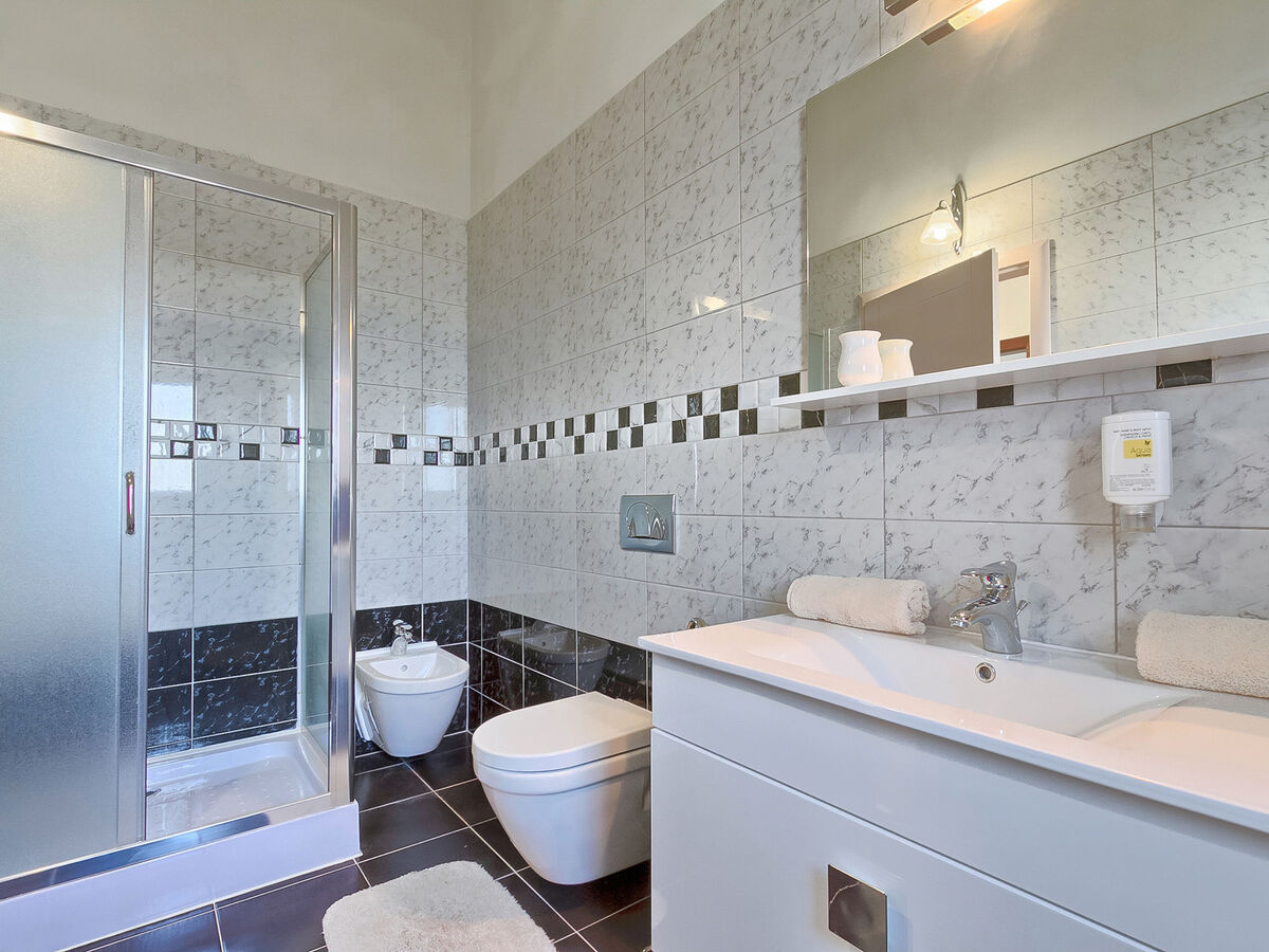 2 chambres, chaque chambre avec: 1 grand-lit (180 cm, longueur 200 cm), douche/bidet/WC, TV (satellite) et air-conditionné.