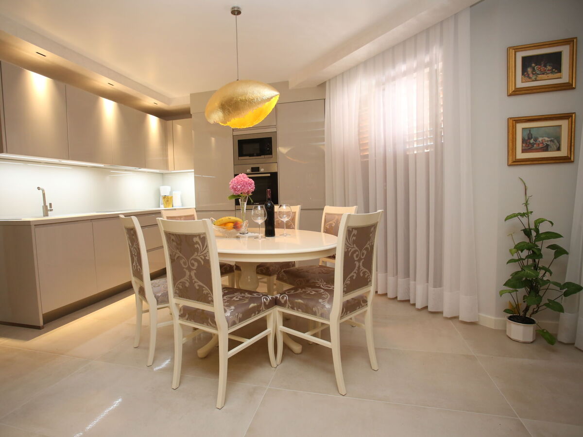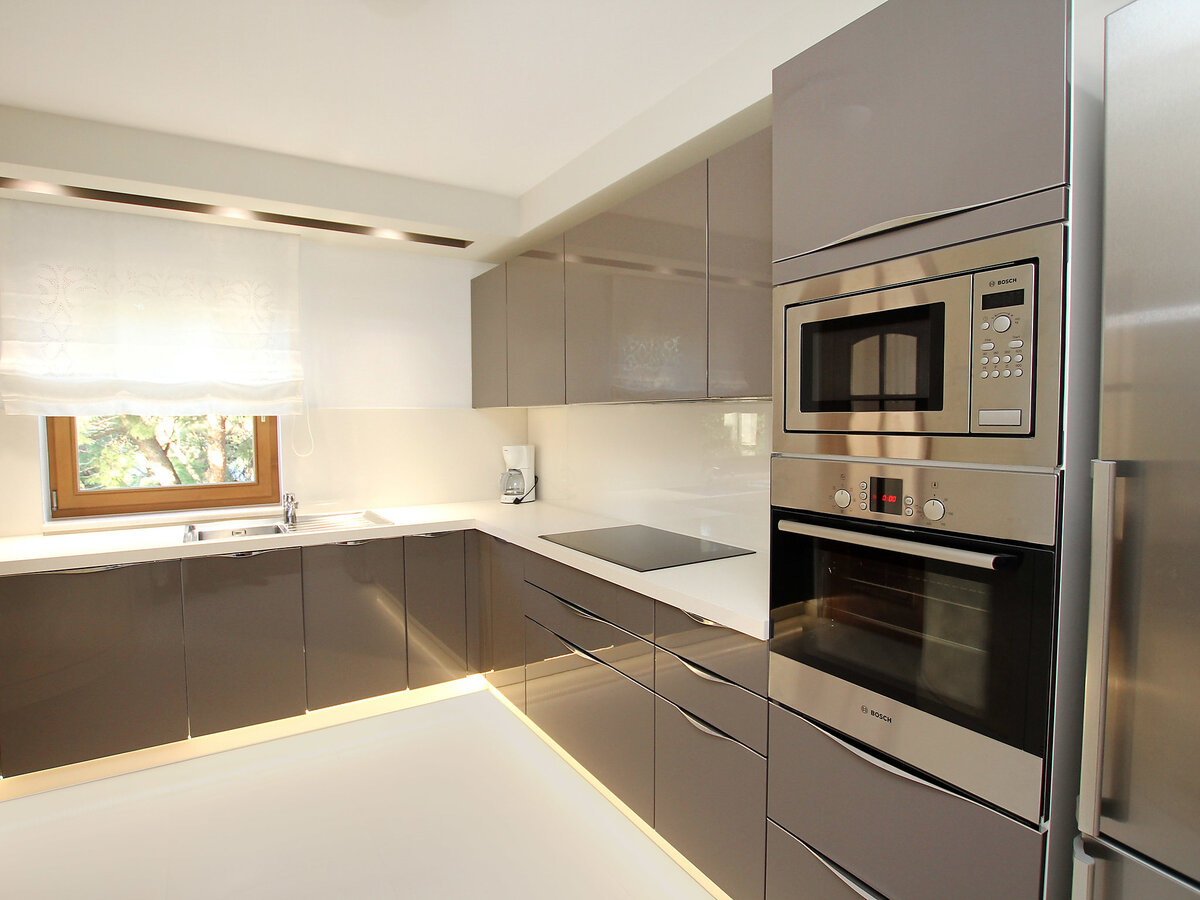 Cuisine (four, lave-vaisselle, 4 plaques vitrocéramiques, micro-ondes, congélateur, cafetière électrique).