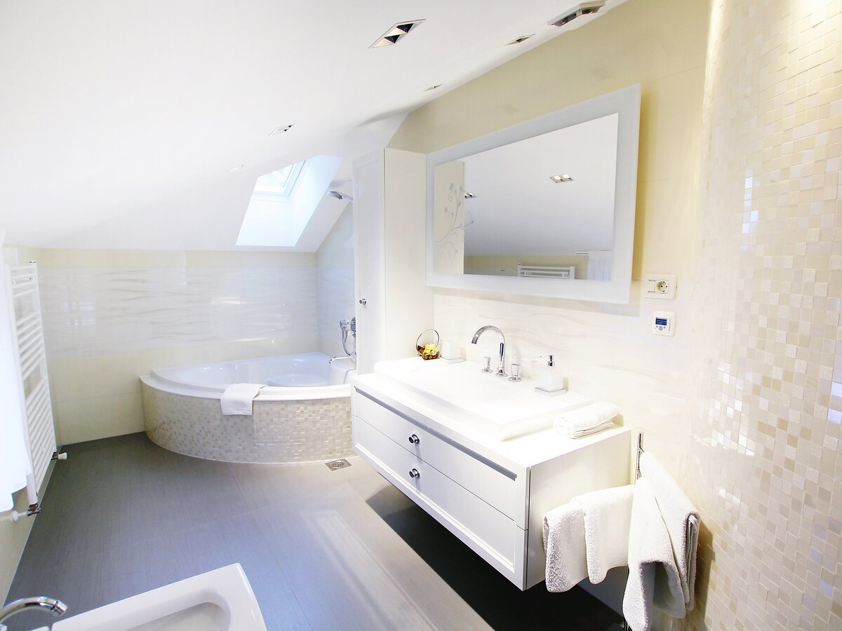 1 chambre 20 m2, mansardée hauteur plafond 145 - 290 cm avec fenêtre sous le toit avec 1 lit double (2 x 90 cm, longueur 200 cm), bain/bidet/WC, avec baignoire d'angle et air-conditionné.